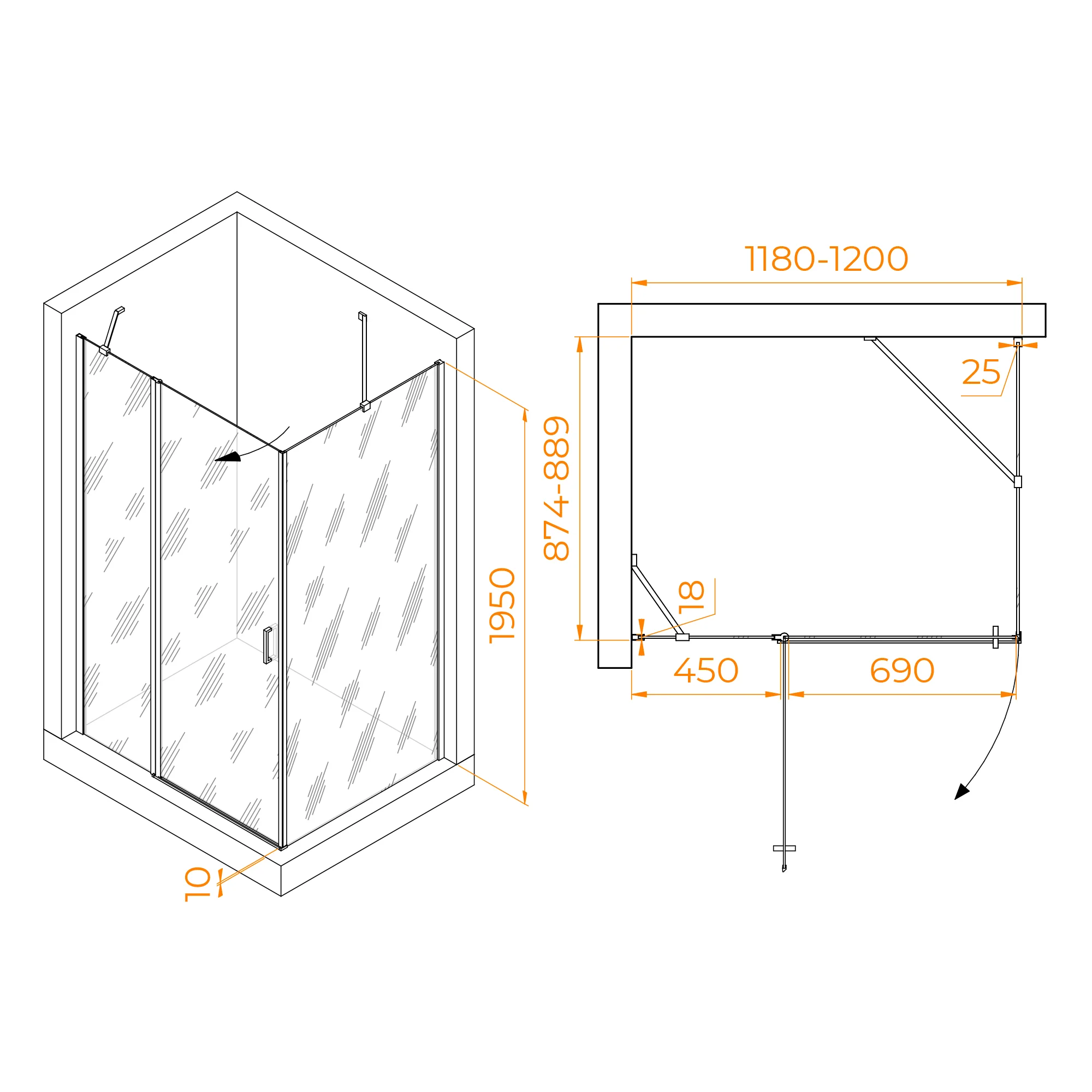 Душевой уголок RGW LE-044 состоит из душевой двери RGW LE-004 и боковой панели RGW Z-14. Установка боковой стенки со стороны открытия двери. В комплекте нижняя пороговая планка. Установка модели универсальная.