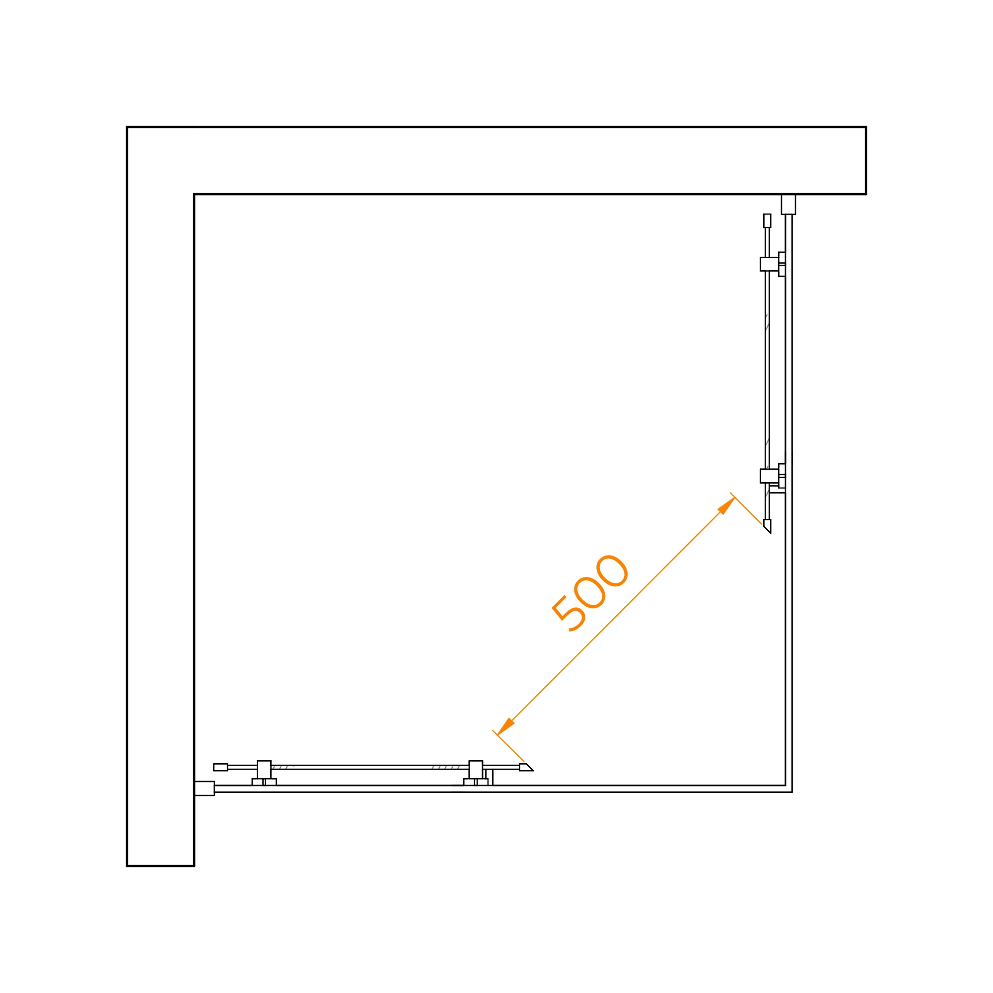 Высота душевого уголка составляет 1950 мм, что позволяет использовать его даже для людей высокого роста. Стойки и рама изготовлены из анодированного алюминия, для предотвращения коррозии и сохранения привлекательного внешнего вида на долгие годы.