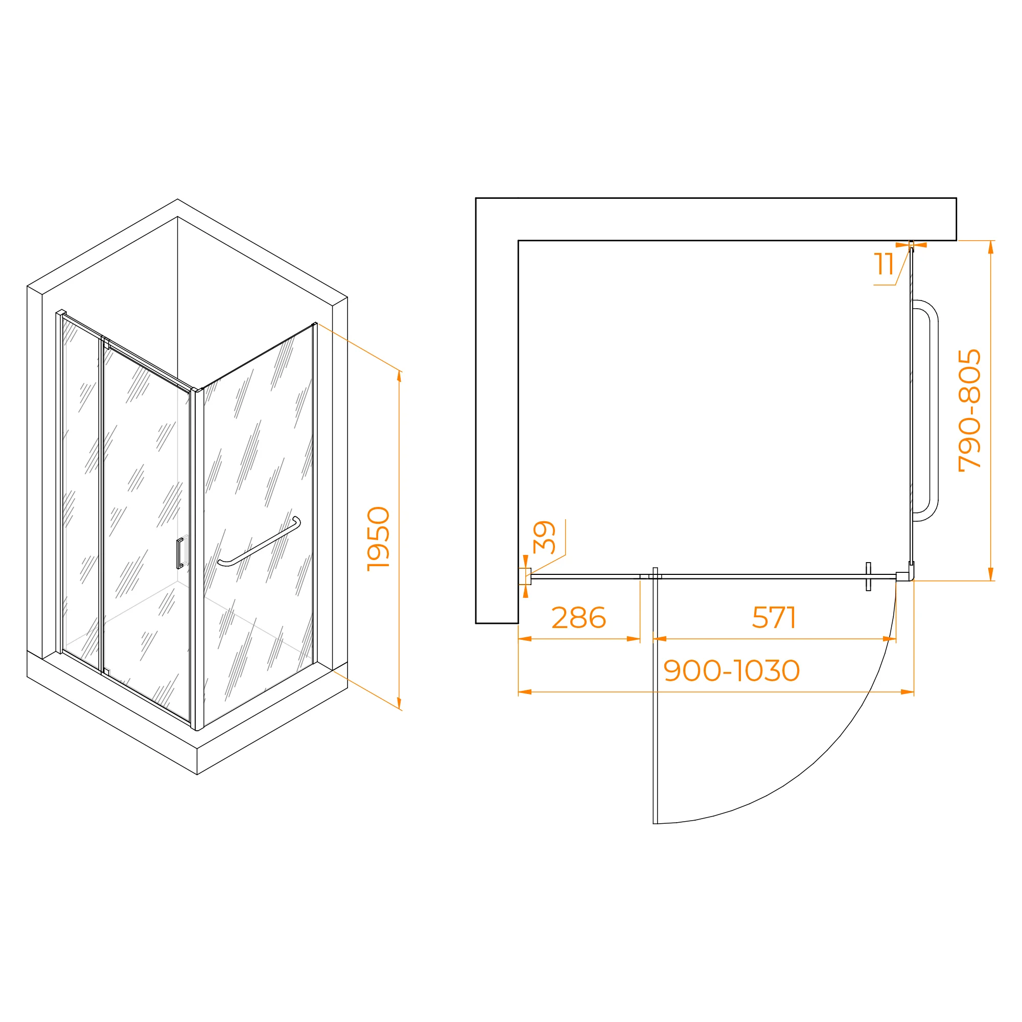 Душевой уголок RGW PA-078-1 (RGW PA-008 + Z-060-2) 900x800 мм 3508078198-11 хром Easy Clean