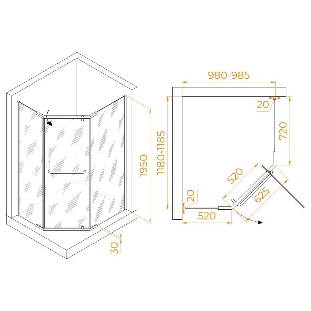 Эта душевая кабина высотой 1950 мм обеспечивает достаточно места и конфиденциальности для принятия душа. Распашная конструкция дверцы обеспечивает легкий доступ и обеспечивает плотное уплотнение, предотвращая утечку воды. Дверь открывается наружу, обеспечивая гибкость и удобство для пользователей.