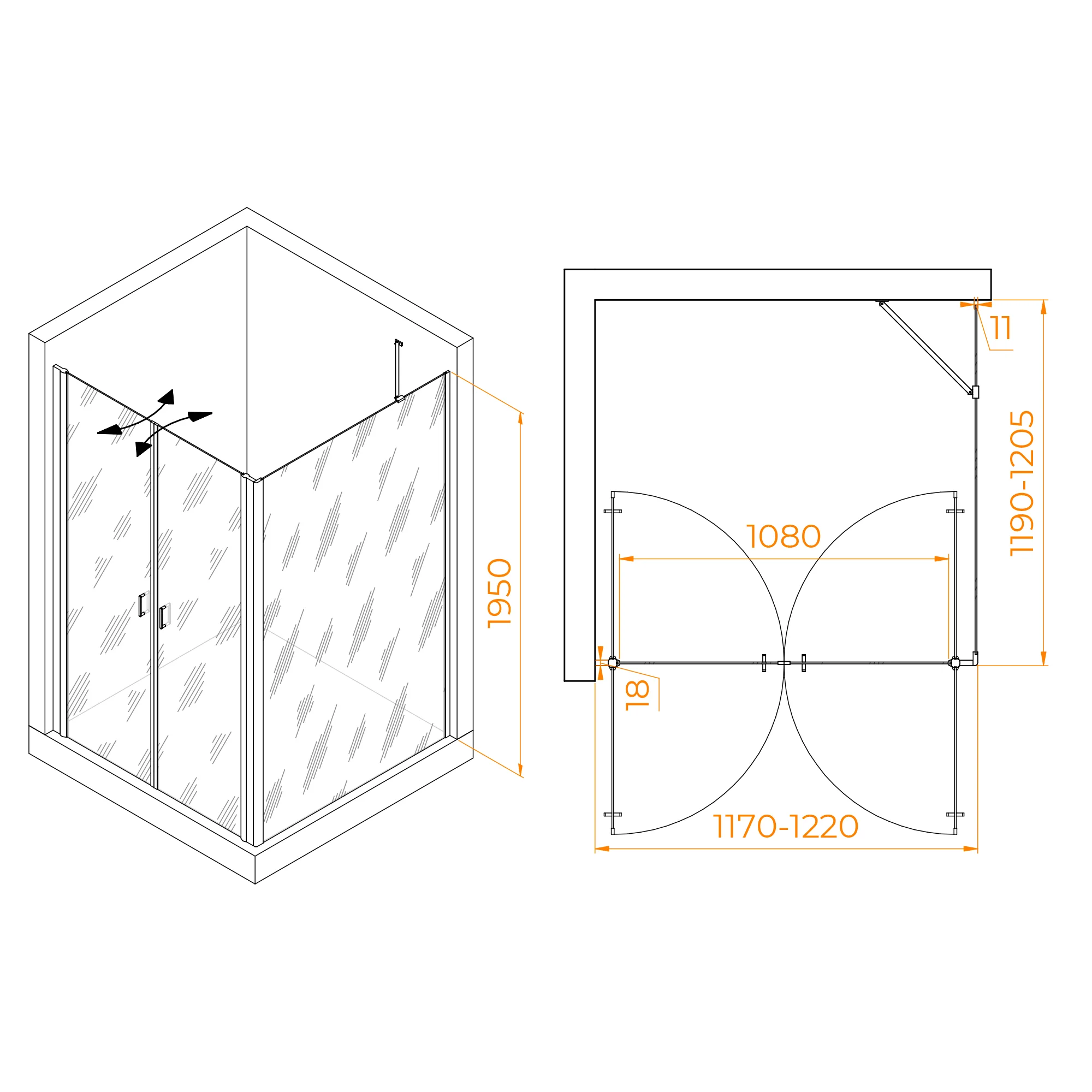 Высота душевого угла составляет 1950 мм, что позволяет легко войти и выйти из него. Это особенно важно для людей с ограниченной подвижностью или маленькими детьми.