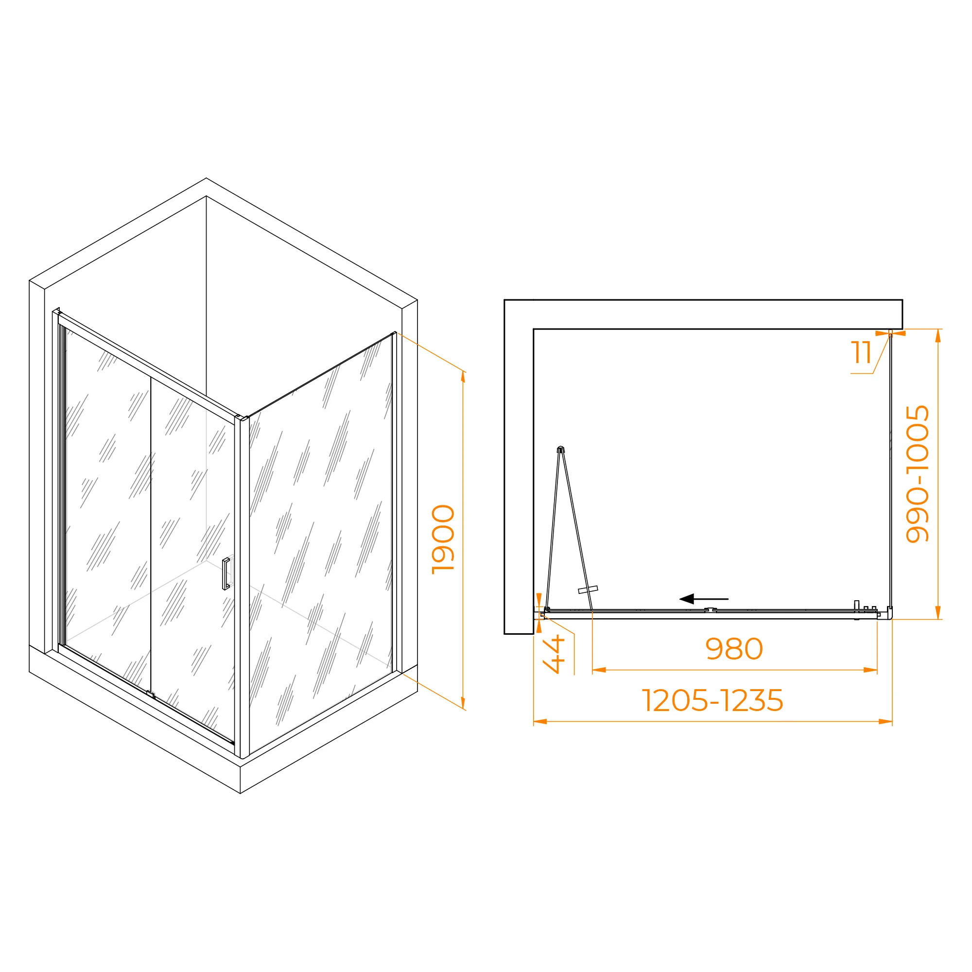 Высота душевого угла составляет 1900 мм, что позволит вам свободно принимать душ и не ощущать дискомфорта. Такие размеры подойдут как для высоких людей, так и для тех, кто предпочитает низкий душевой уголок.