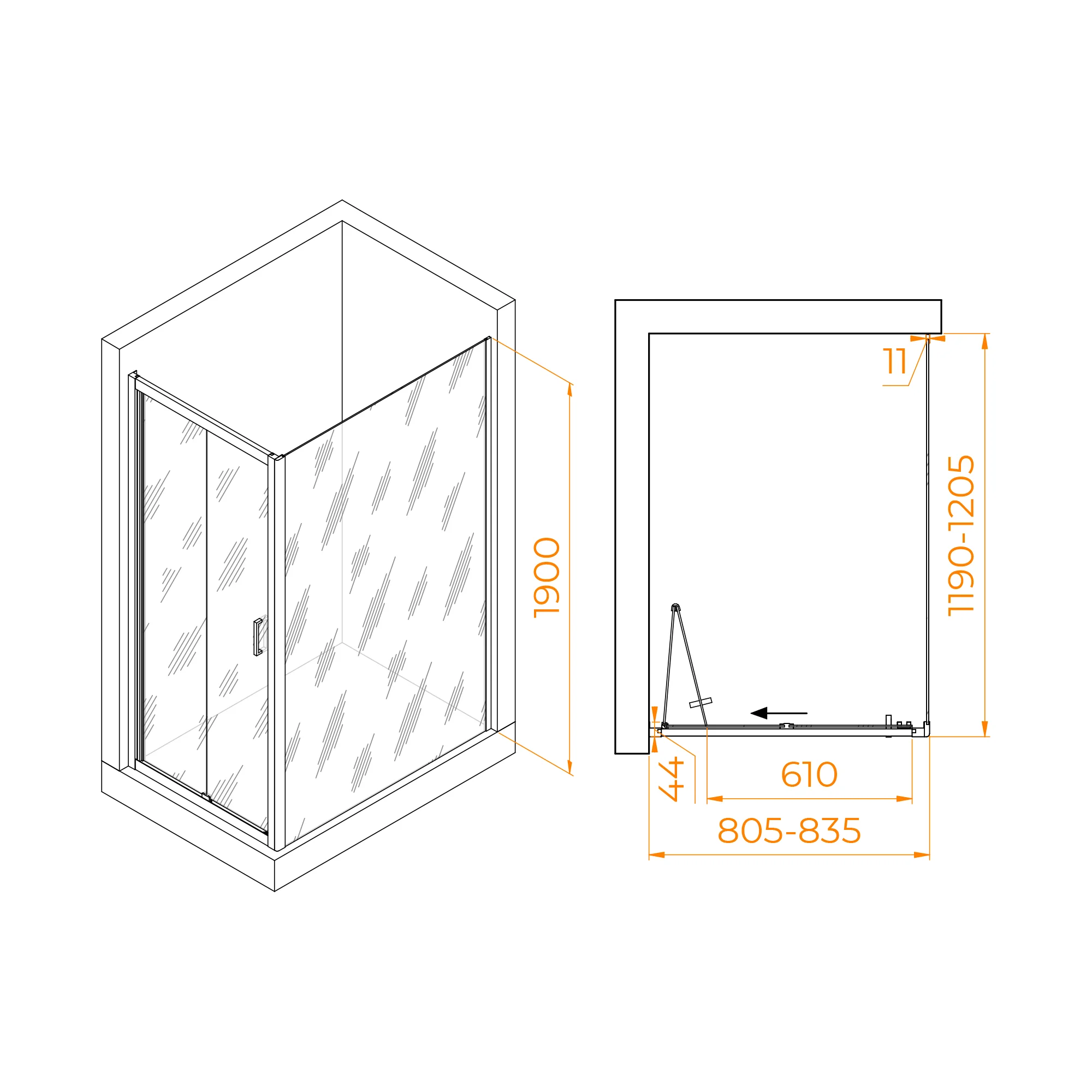 Высота душевого угла составляет 1900 мм, что позволит вам свободно принимать душ и не ощущать дискомфорта. Такие размеры подойдут как для высоких людей, так и для тех, кто предпочитает низкий душевой уголок.