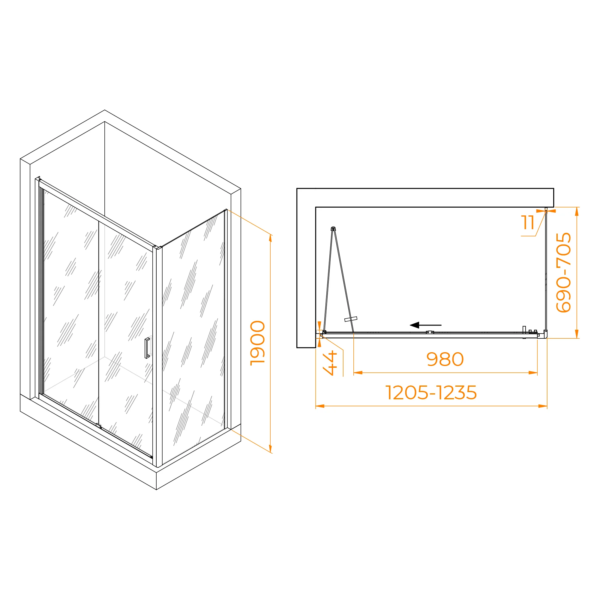 Регулируемый профиль позволяет настроить душевой уголок под вашу ванную комнату. Вы можете подстроить его под любые размеры и особенности вашего пространства.