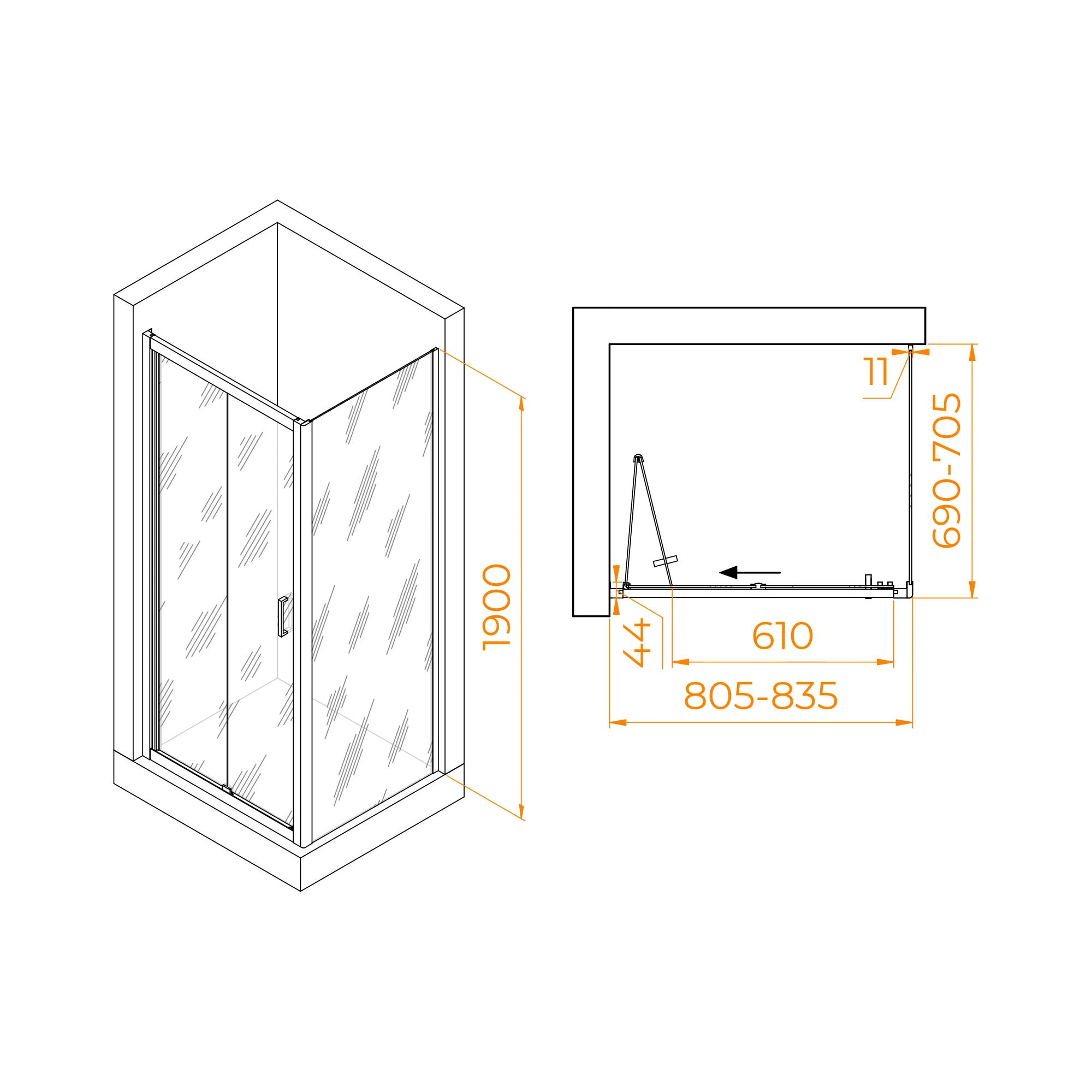 Регулируемый профиль позволяет настроить душевой уголок под вашу ванную комнату. Вы можете подстроить его под любые размеры и особенности вашего пространства.