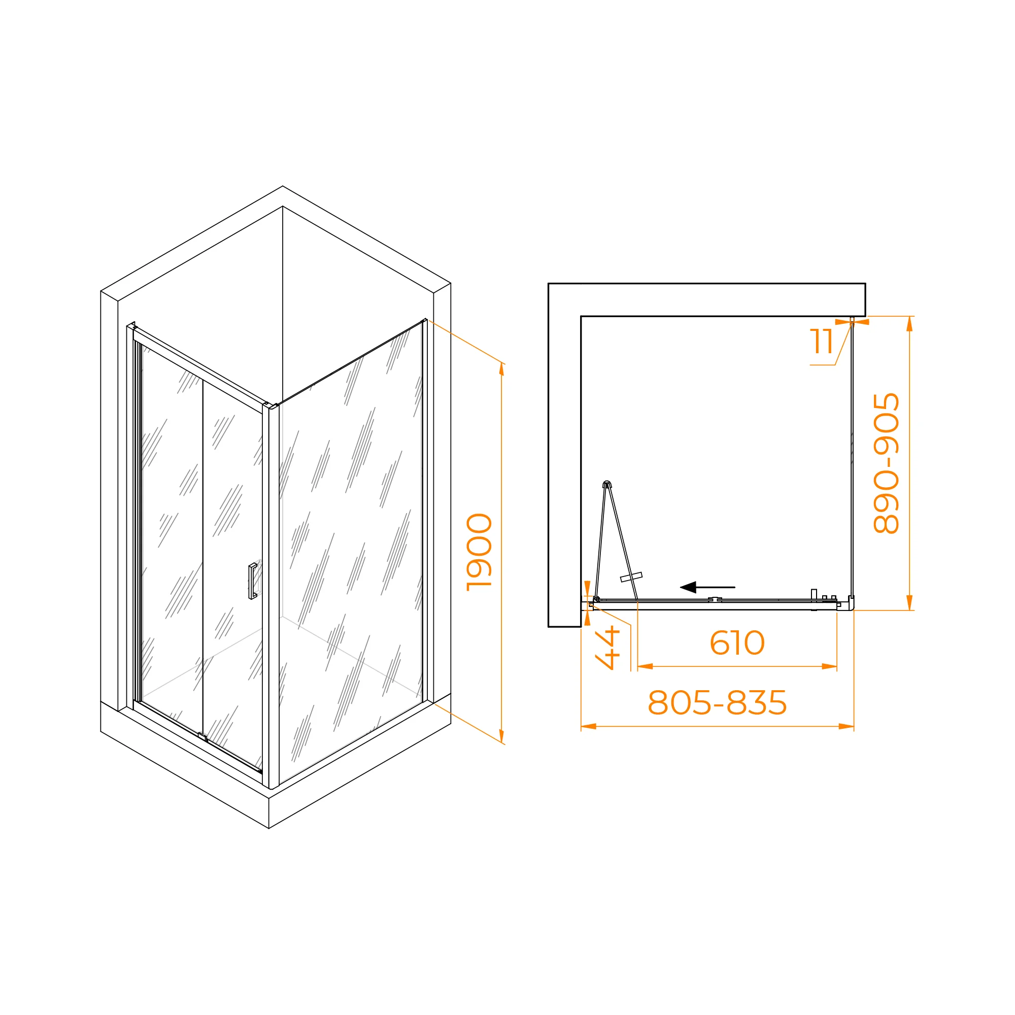 Регулируемый профиль позволяет настроить душевой уголок под вашу ванную комнату. Вы можете подстроить его под любые размеры и особенности вашего пространства.