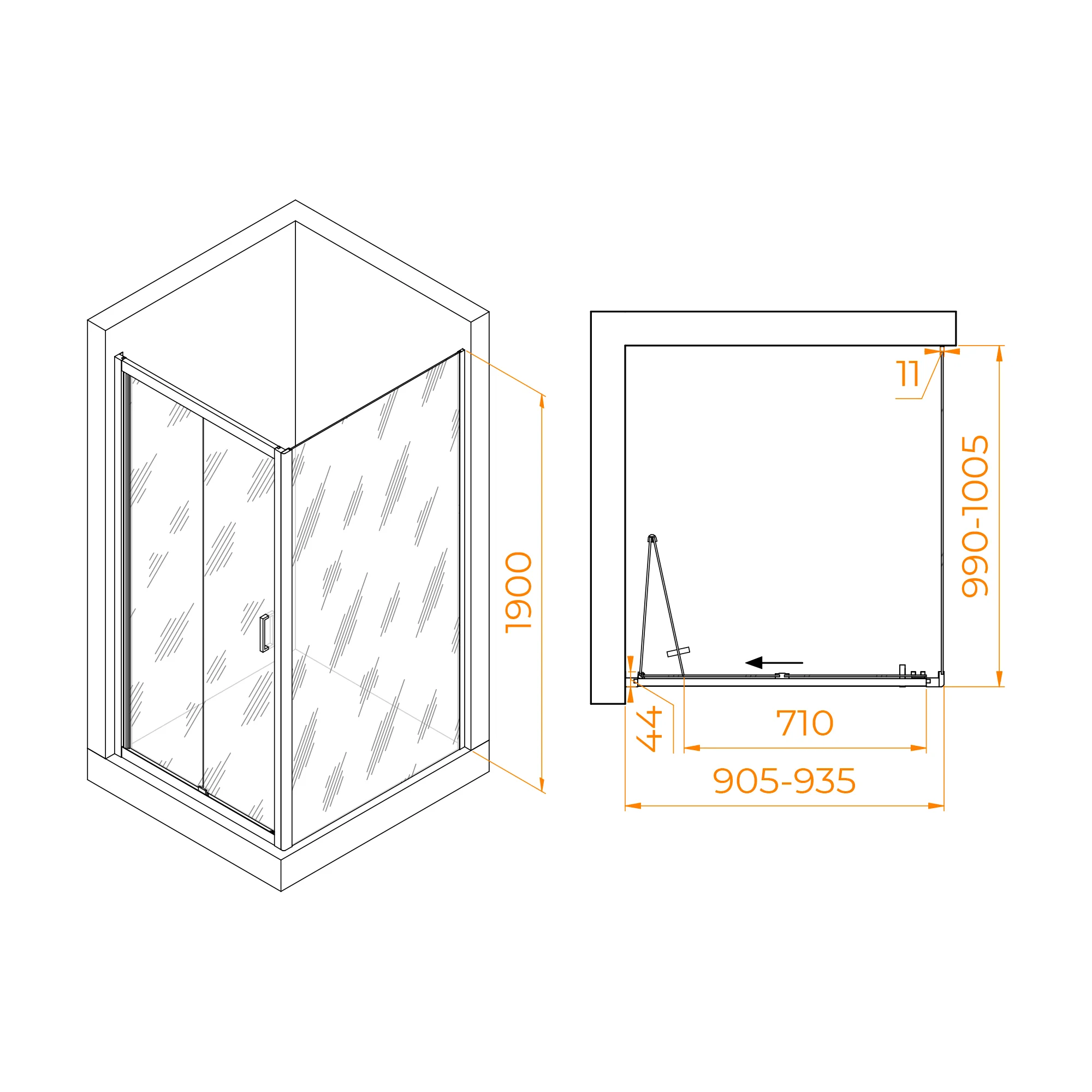 Регулируемый профиль позволяет настроить душевой уголок под вашу ванную комнату. Вы можете подстроить его под любые размеры и особенности вашего пространства.