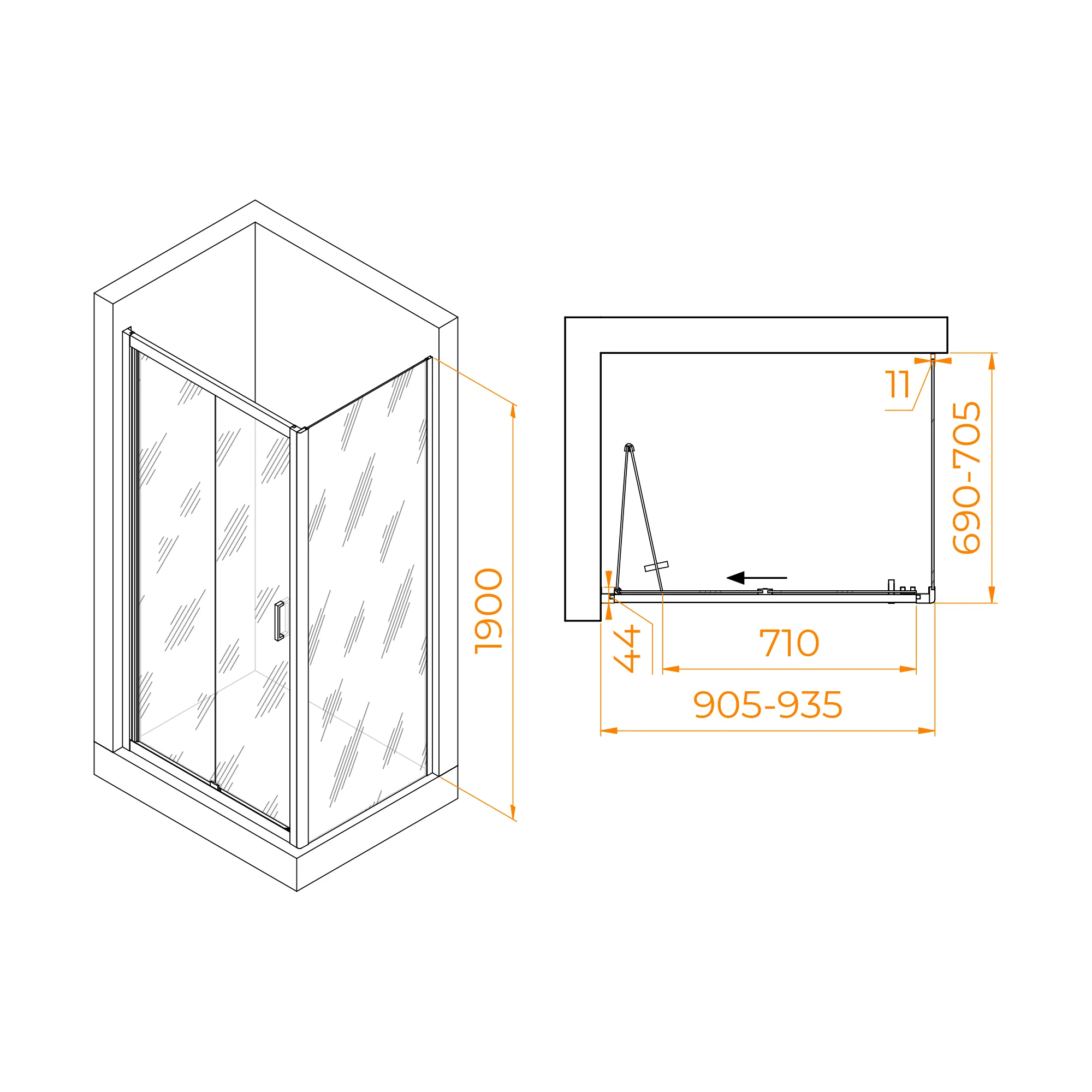 Регулируемый профиль позволяет настроить душевой уголок под вашу ванную комнату. Вы можете подстроить его под любые размеры и особенности вашего пространства.
