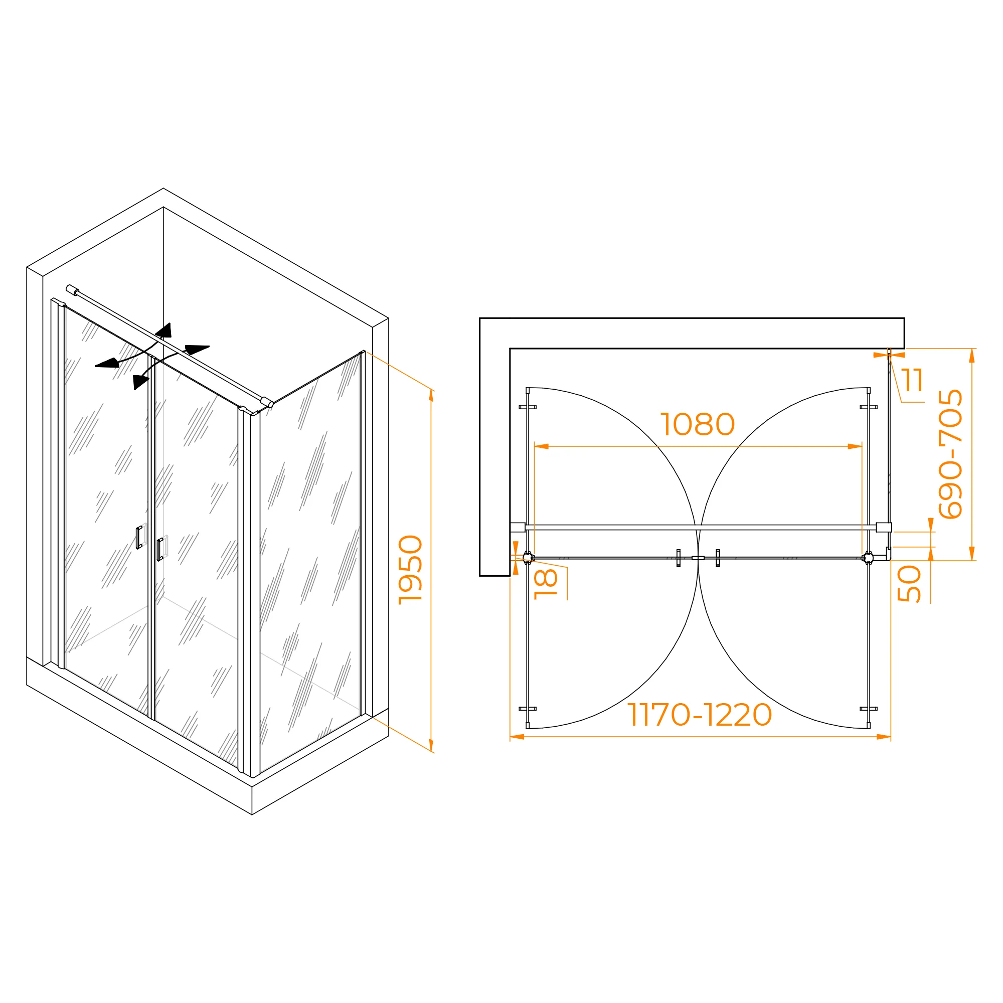 Двери данного уголка имеют маятниковую конструкцию, что обеспечивает удобный и легкий доступ внутрь и изнутри душевого уголка. Регулируемый профиль позволяет настроить двери по высоте и ширине, чтобы обеспечить оптимальную посадку и герметичность.