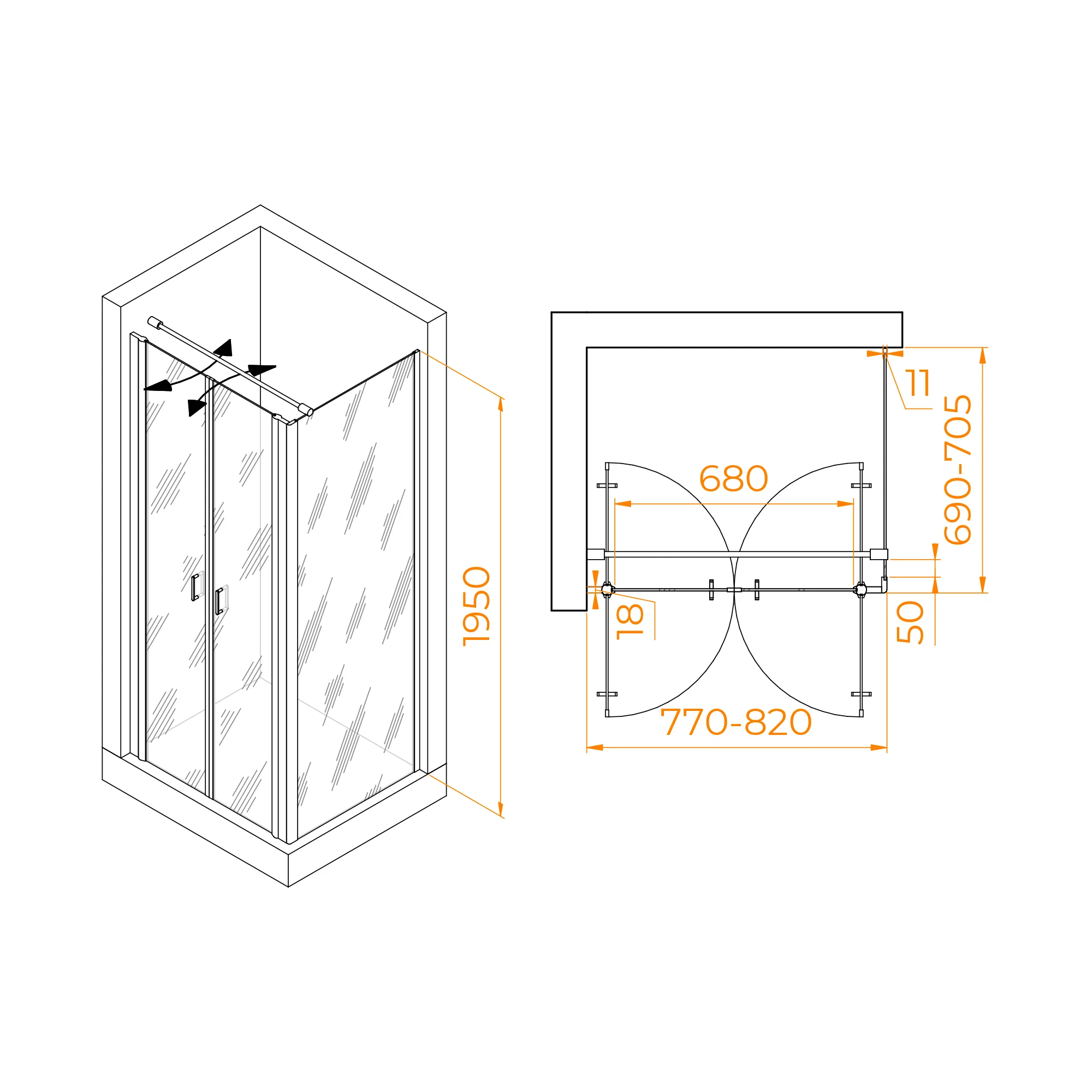 Двери данного уголка имеют маятниковую конструкцию, что обеспечивает удобный и легкий доступ внутрь и изнутри душевого уголка. Регулируемый профиль позволяет настроить двери по высоте и ширине, чтобы обеспечить оптимальную посадку и герметичность.