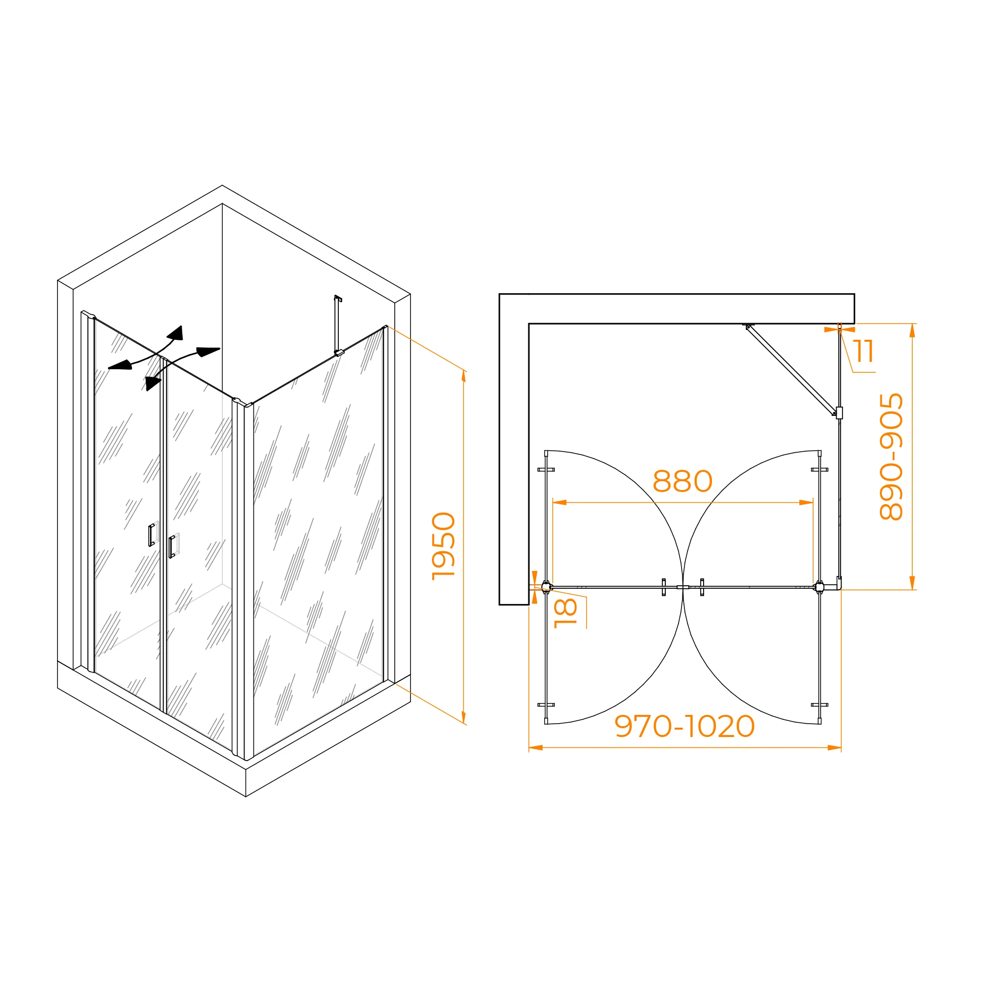 Высота душевого угла составляет 1950 мм, что позволяет легко войти и выйти из него. Это особенно важно для людей с ограниченной подвижностью или маленькими детьми.