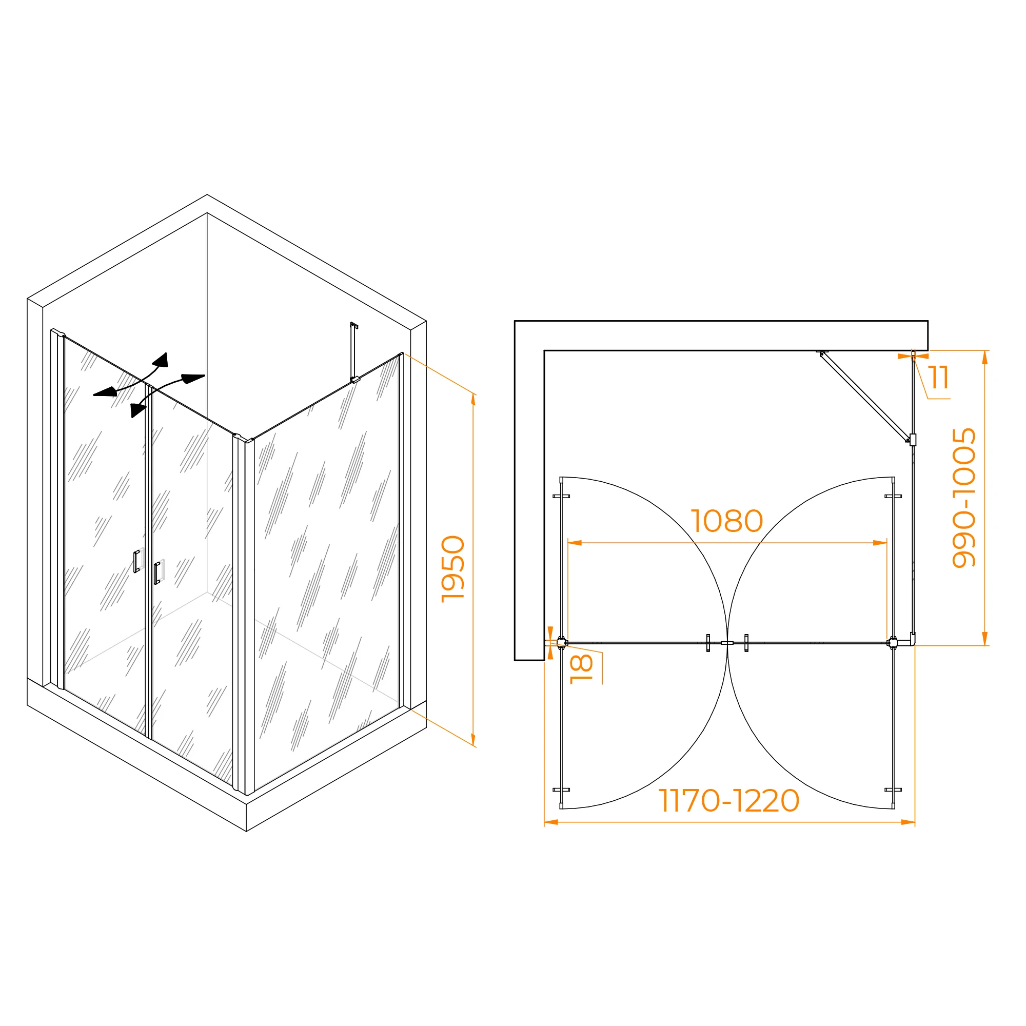 Форма душевого угла прямоугольная, что позволяет оптимально использовать пространство в вашей ванной комнате. Вершины угла округлены, что обеспечивает безопасность и комфорт во время принятия душа.