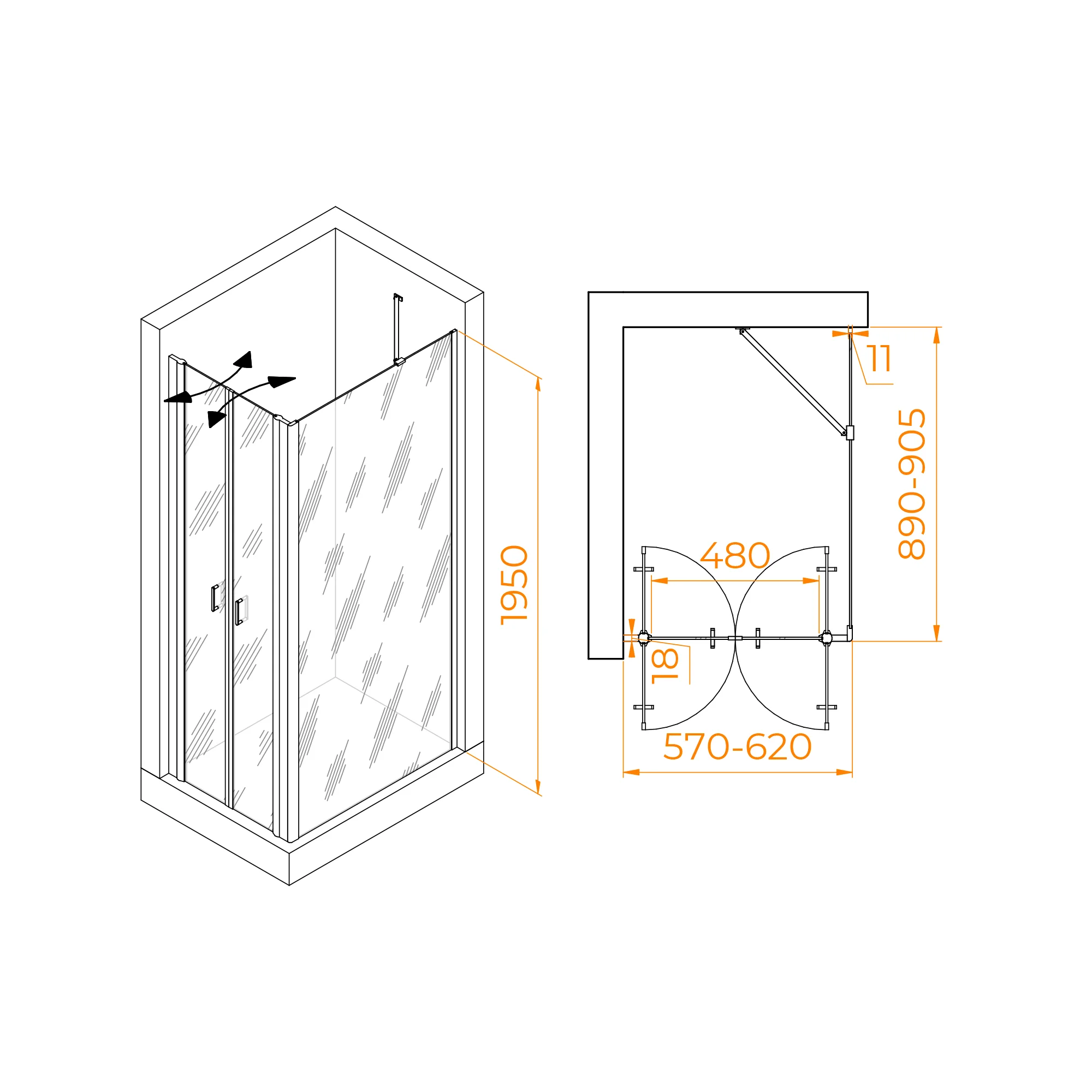 Форма душевого угла прямоугольная, что позволяет оптимально использовать пространство в вашей ванной комнате. Вершины угла округлены, что обеспечивает безопасность и комфорт во время принятия душа.