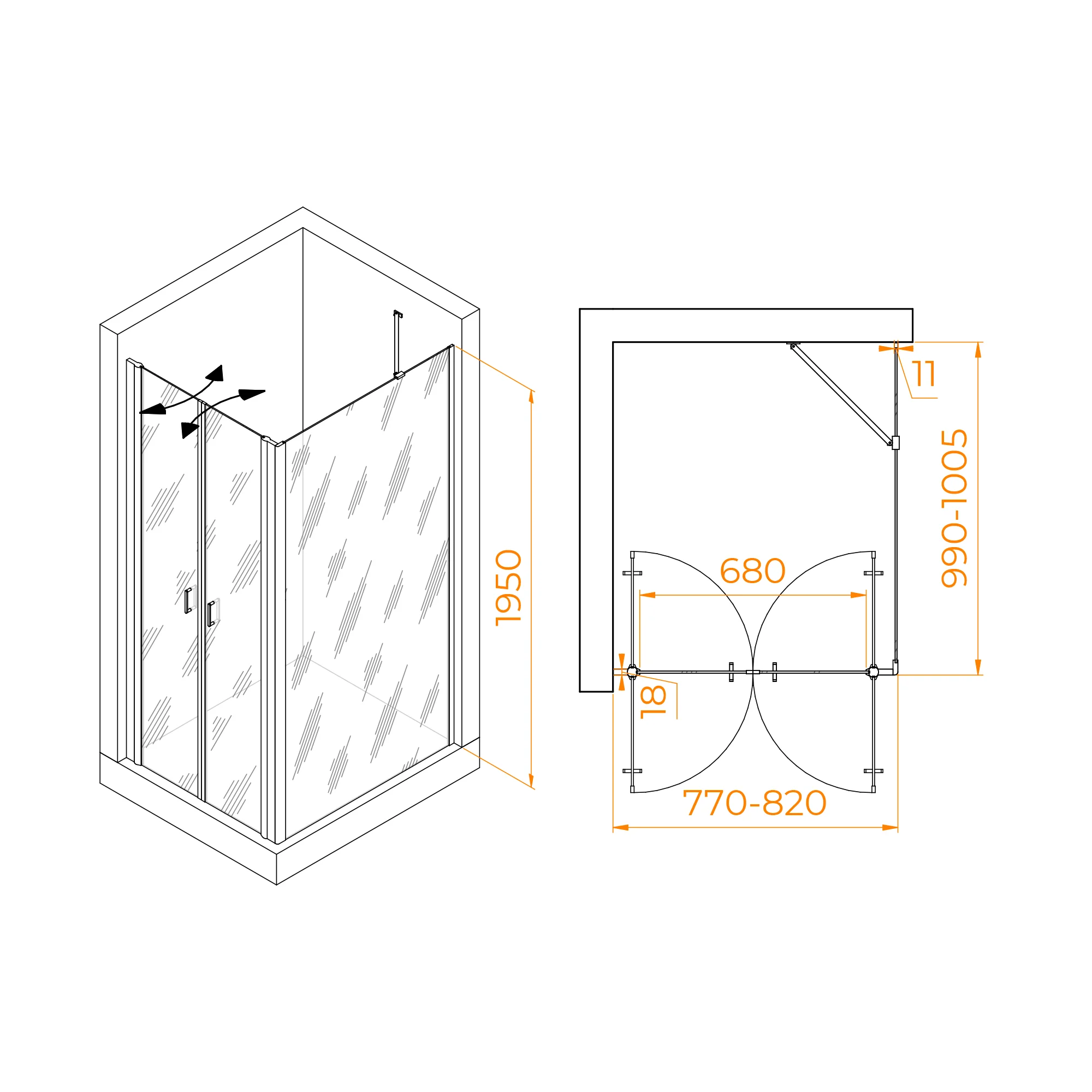 Высота душевого угла составляет 1950 мм, что позволяет легко войти и выйти из него. Это особенно важно для людей с ограниченной подвижностью или маленькими детьми.