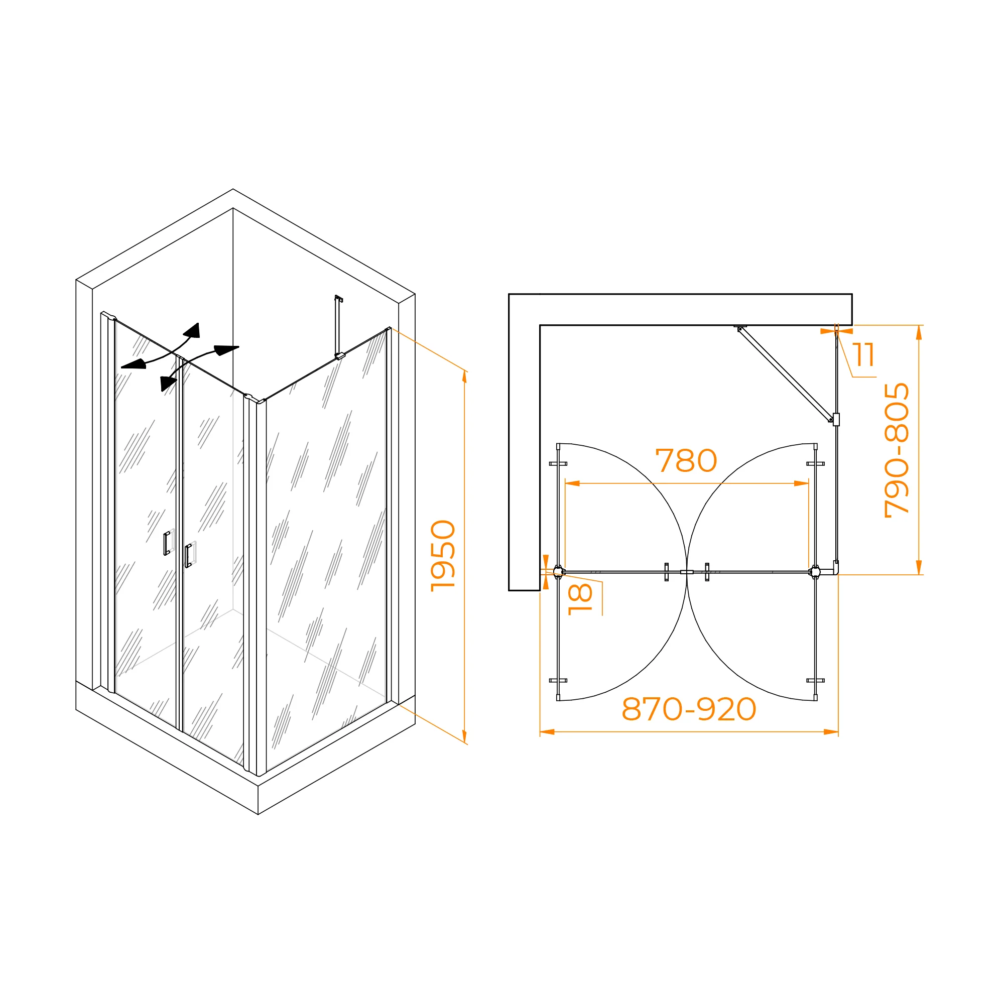 Высота душевого угла составляет 1950 мм, что позволяет легко войти и выйти из него. Это особенно важно для людей с ограниченной подвижностью или маленькими детьми.