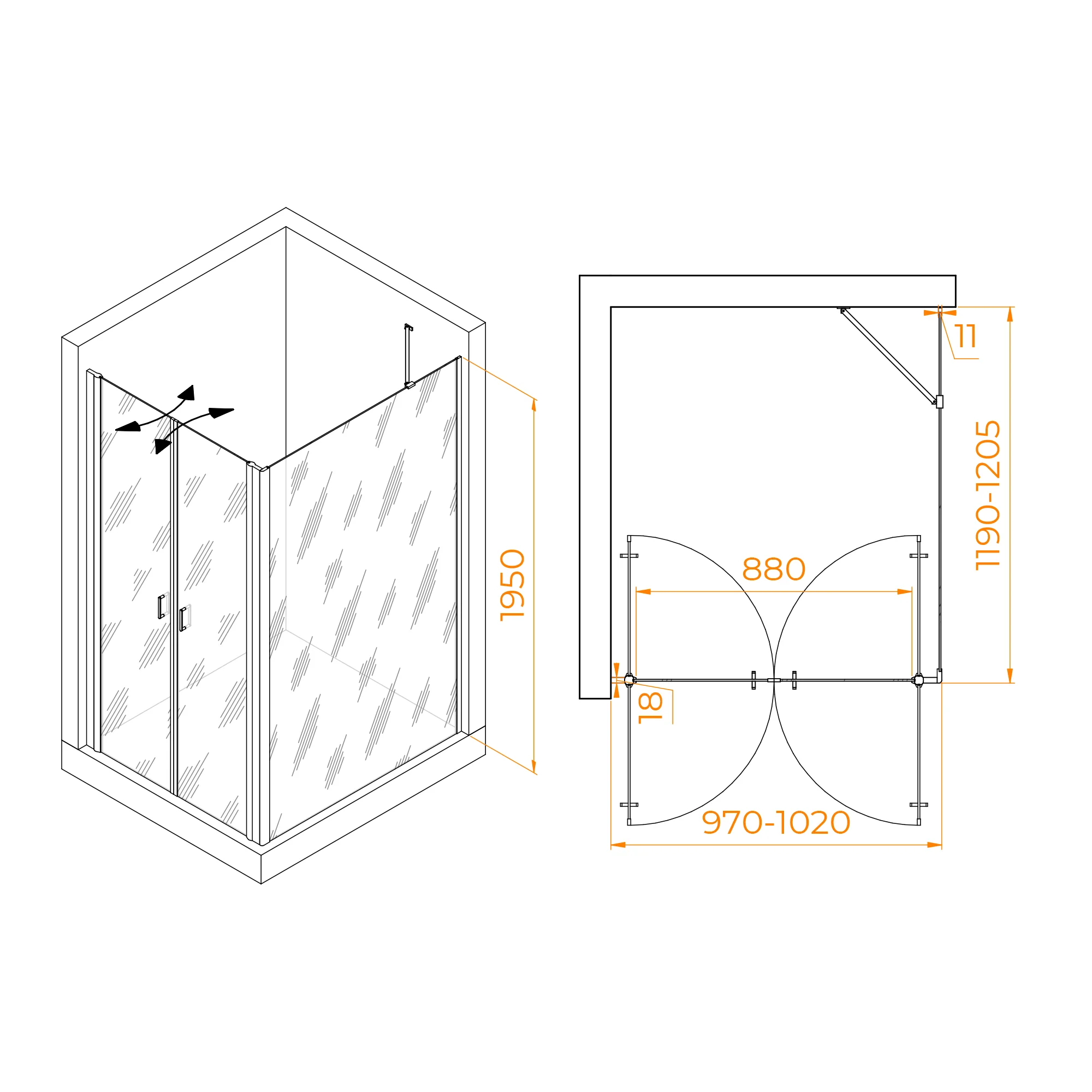 Душевой угол PA-144B (PA-104B+Z-050-2B+O-204B) - это превосходный выбор для тех, кто ищет комфорт и элегантность в своей ванной комнате. Этот душевой угол имеет толщину стекла 6 мм и прямоугольную форму, что делает его идеальным для установки в углу ванной комнаты.