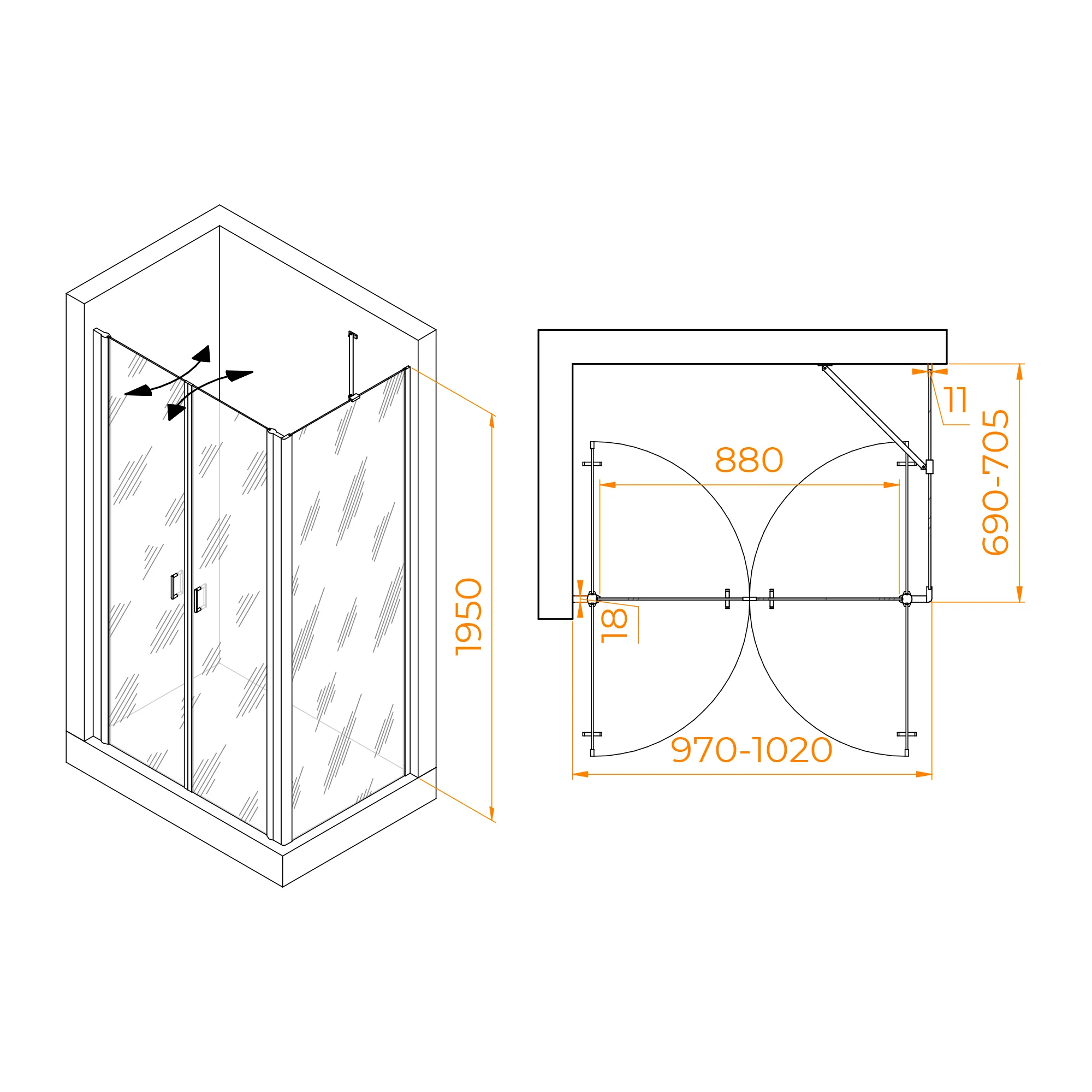 Душевой уголок RGW PA-144B (PA-104B+Z-050-2B+O-204B) 060814407-14 стекло прозрачное
