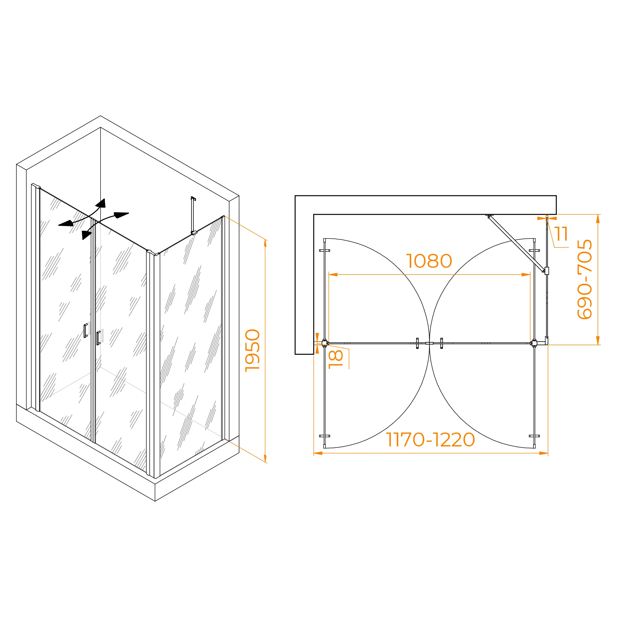 Душевой угол PA-144B (PA-104B+Z-050-2B+O-204B) - это превосходный выбор для тех, кто ищет комфорт и элегантность в своей ванной комнате. Этот душевой угол имеет толщину стекла 6 мм и прямоугольную форму, что делает его идеальным для установки в углу ванной комнаты.
