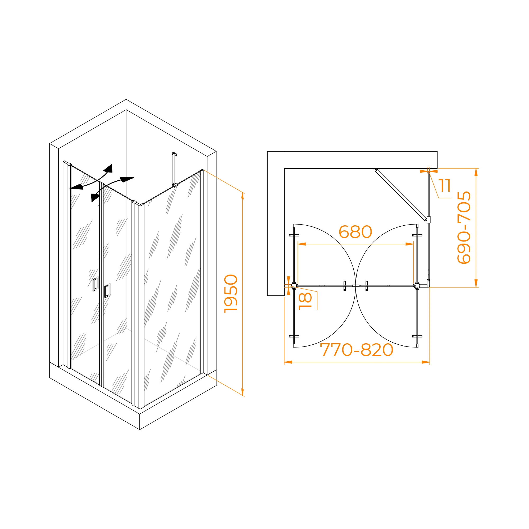 Высота душевого угла составляет 1950 мм, что позволяет вам полностью наслаждаться душем, не беспокоясь о попадании воды за его пределы. Класс герметичности этого душевого угла - 2 класс, что гарантирует, что вода не вытечет из душевого угла и не повредит ванную комнату.
