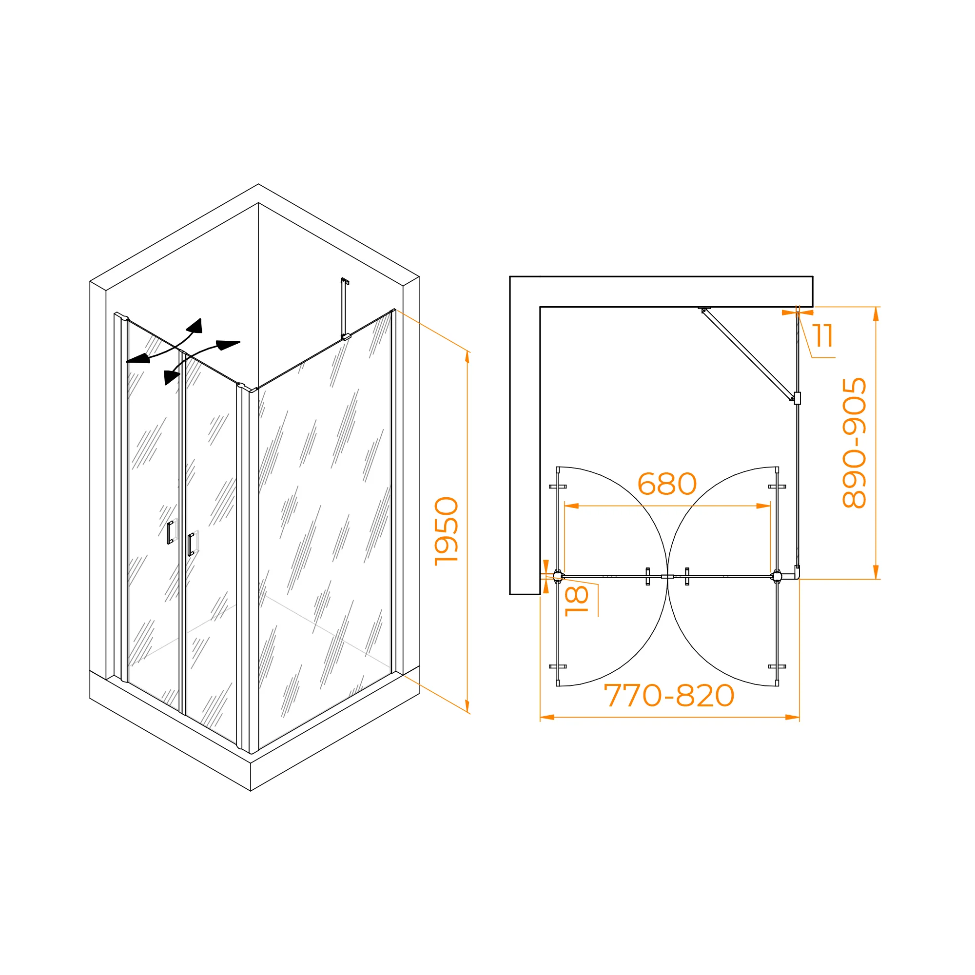Высота душевого угла составляет 1950 мм, что позволяет вам полностью наслаждаться душем, не беспокоясь о попадании воды за его пределы. Класс герметичности этого душевого угла - 2 класс, что гарантирует, что вода не вытечет из душевого угла и не повредит ванную комнату.