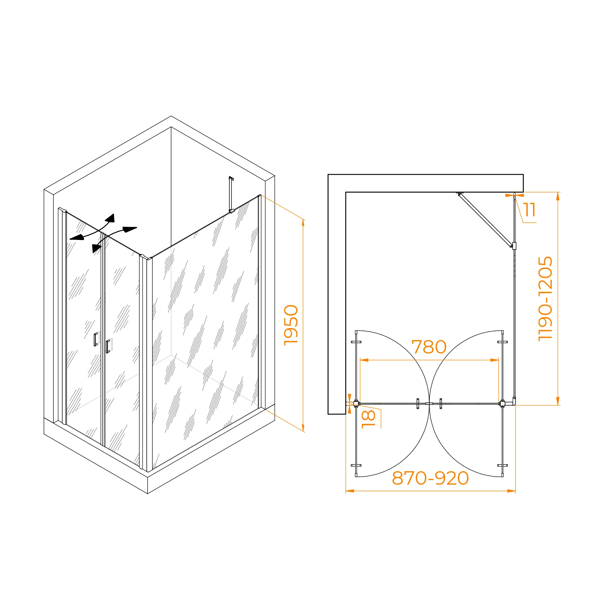 Душевой уголок RGW PA-144B (PA-104B+Z-050-2B+O-204B) 900x1200 мм 060814492-14 черный Easy Clean