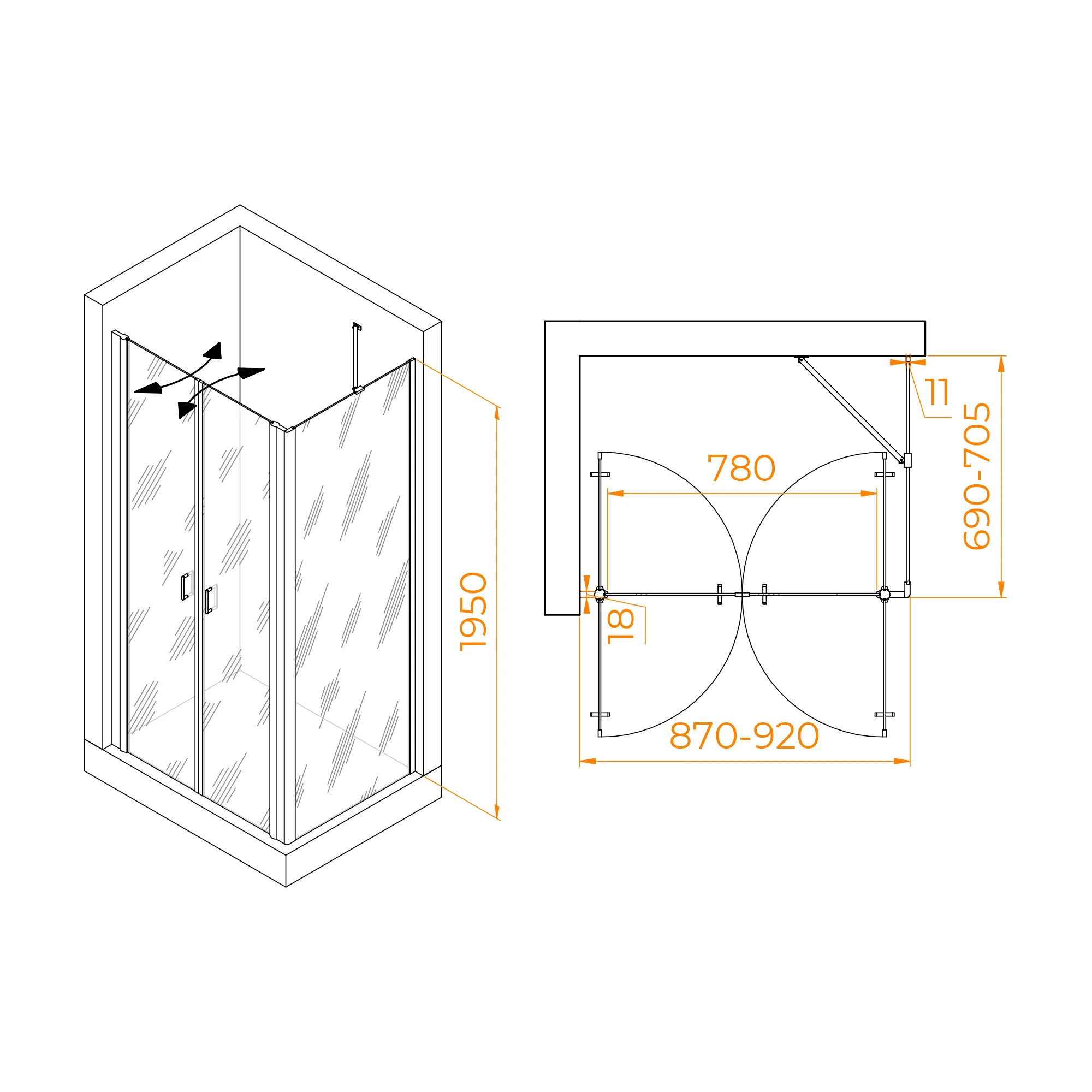 Душевой уголок RGW PA-144B (PA-104B+Z-050-2B+O-204B) 900x700 мм 060814497-14 черный Easy Clean