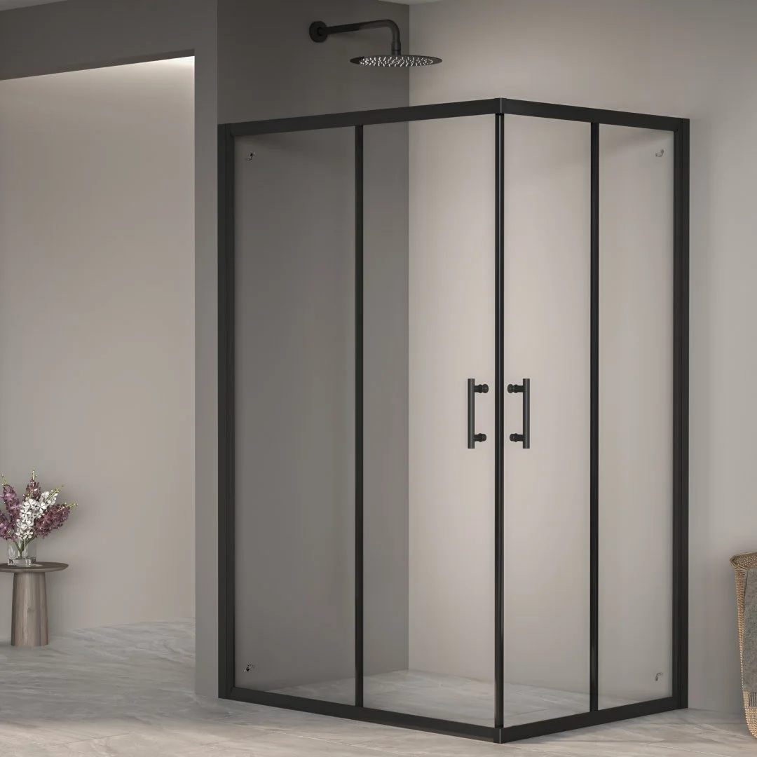 Профиль душевого уголка выполнен из анодированного алюминия черного цвета, который не только обеспечивает прочность и долговечность, но и придает этому душевому уголку современный и стильный дизайн. Материал профиля легкий и прочный, при этом обладает высокой степенью коррозионной устойчивости, что делает его идеальным выбором для использования в ванной комнате.
