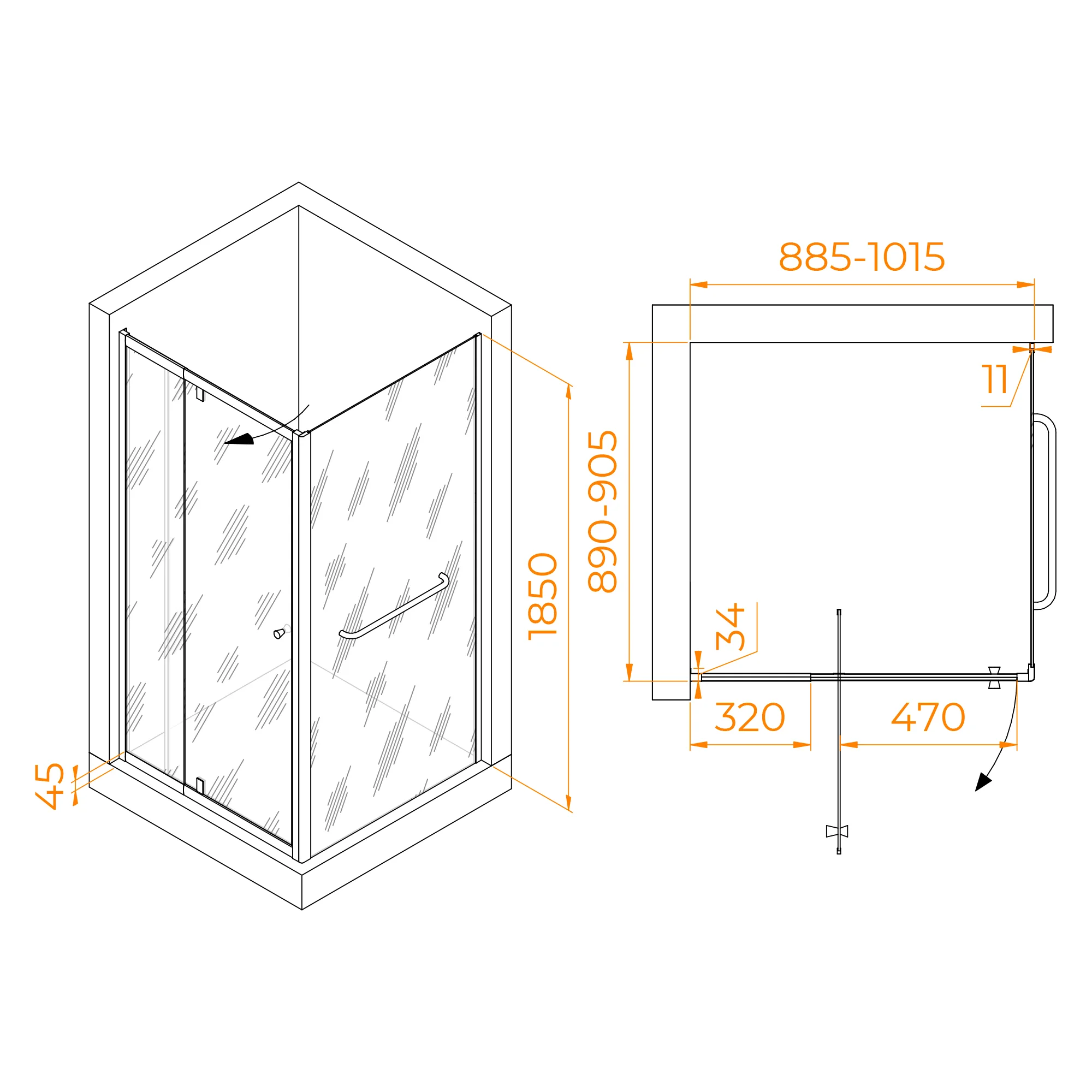 Высота душевого угла составляет 1850 мм, что сделает его удобным для клиентов всех размеров и форм тела.