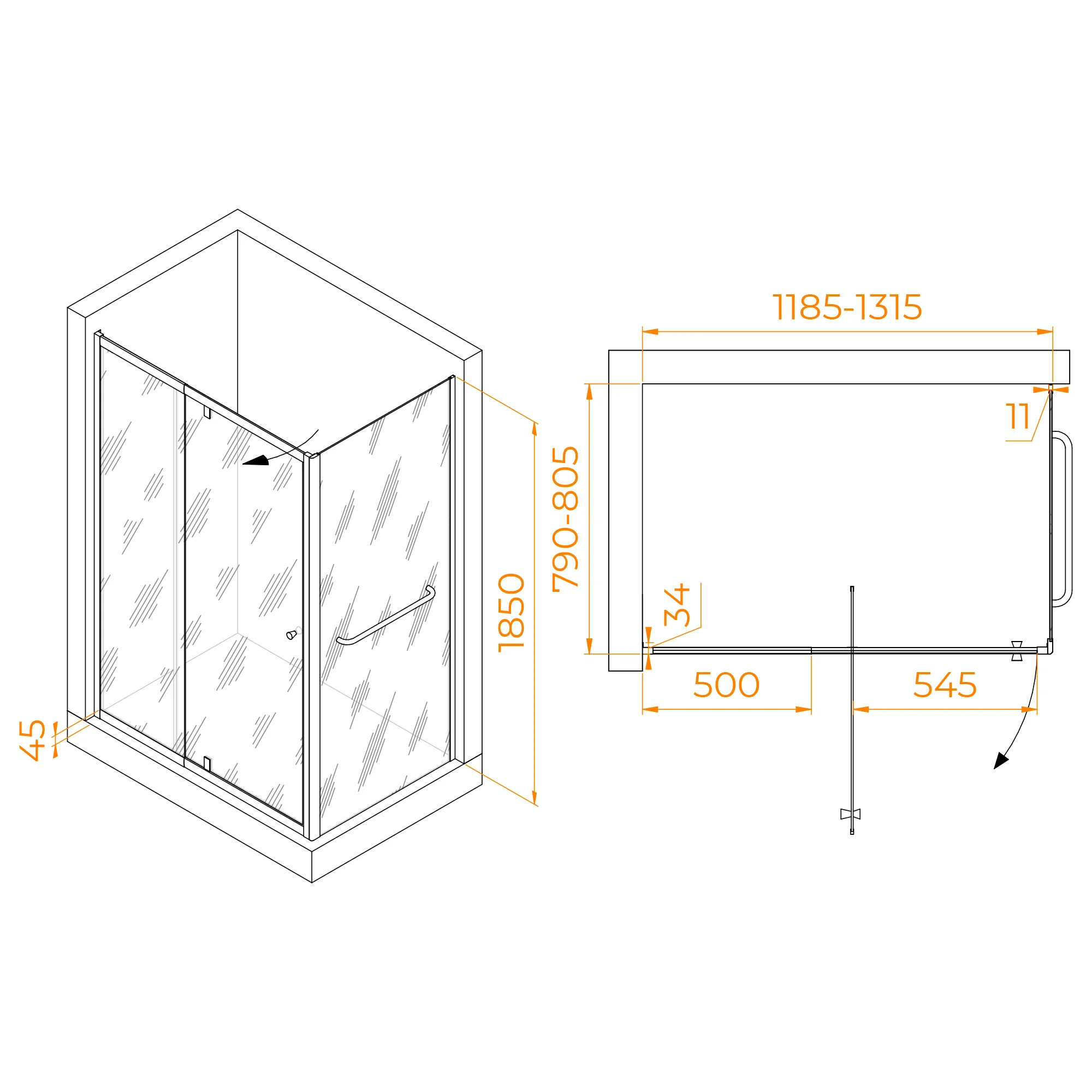 Высота душевого угла составляет 1850 мм, что позволяет комфортно использовать его даже для более высоких пользователей. Душевой уголок относится к 1 классу герметичности, что гарантирует отсутствие протечек и позволяет наслаждаться полной безопасностью и комфортом во время принятия душа.