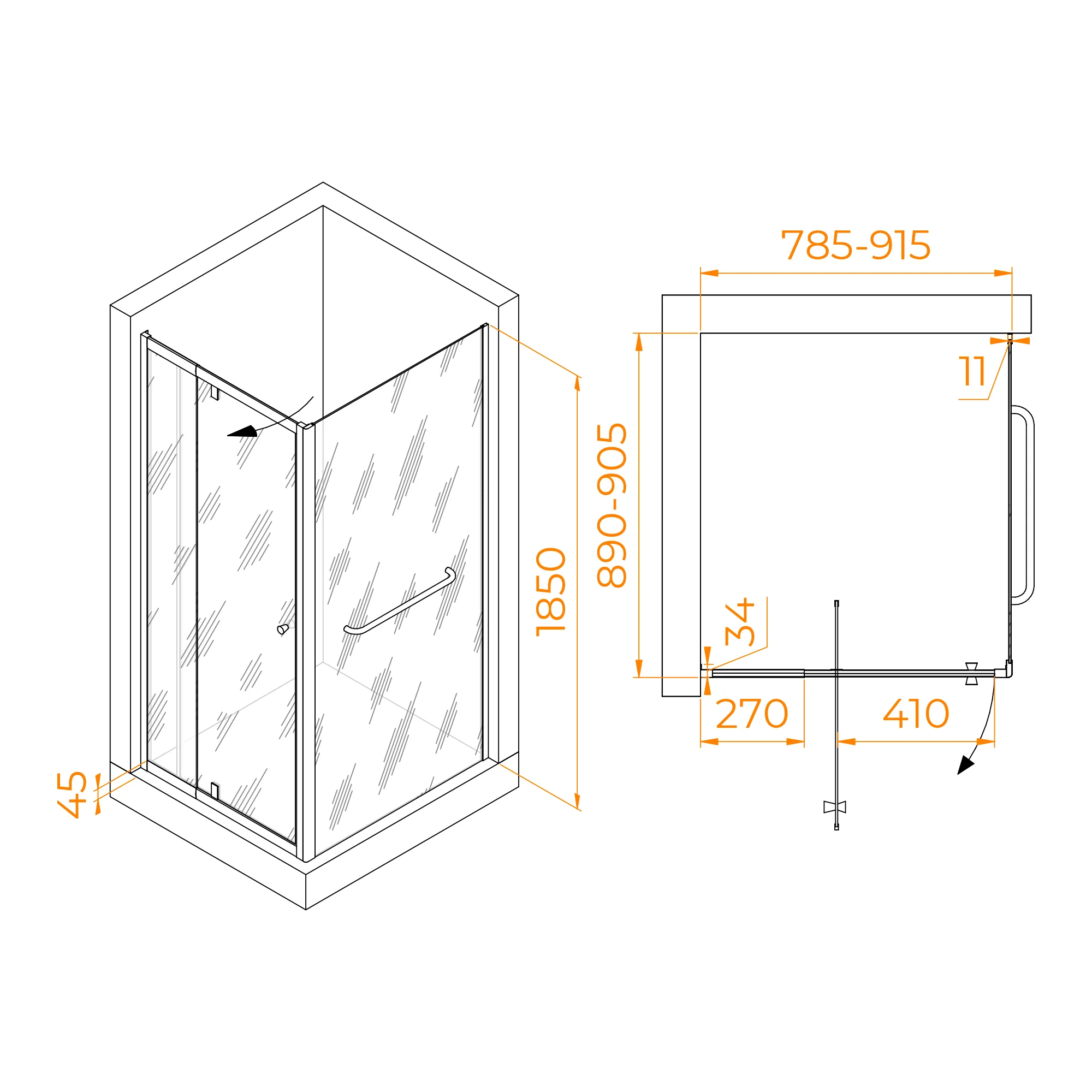 Высота душевого угла составляет 1850 мм, что позволяет комфортно использовать его даже для более высоких пользователей. Душевой уголок относится к 1 классу герметичности, что гарантирует отсутствие протечек и позволяет наслаждаться полной безопасностью и комфортом во время принятия душа.