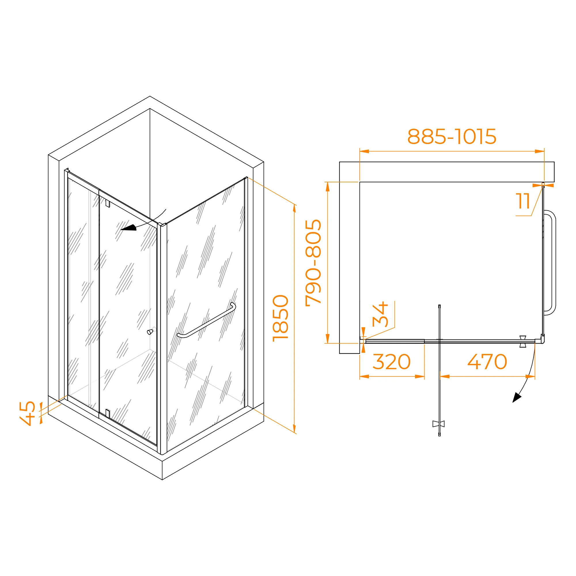Высота душевого угла составляет 1850 мм, что позволяет комфортно использовать его даже для более высоких пользователей. Душевой уголок относится к 1 классу герметичности, что гарантирует отсутствие протечек и позволяет наслаждаться полной безопасностью и комфортом во время принятия душа.
