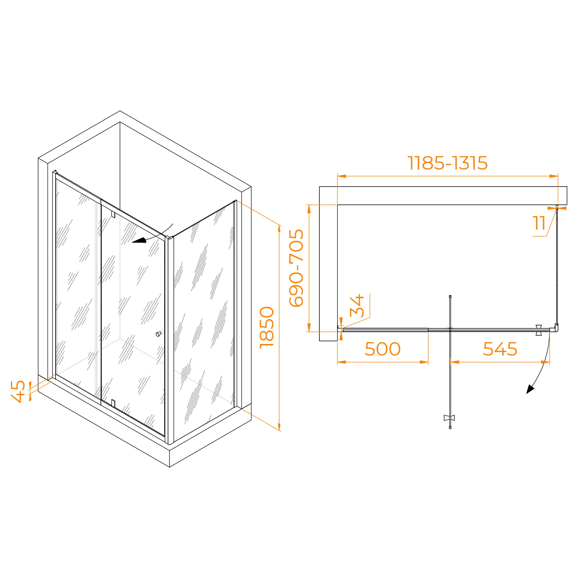 Конструкция дверей душевого уголка распашная, что облегчает доступ и создает дополнительное пространство в ванной комнате. Стекло прозрачное и покрыто антикапельной технологией Easy Clean, что делает его легким в уходе и обеспечивает чистоту и прозрачность стекла.