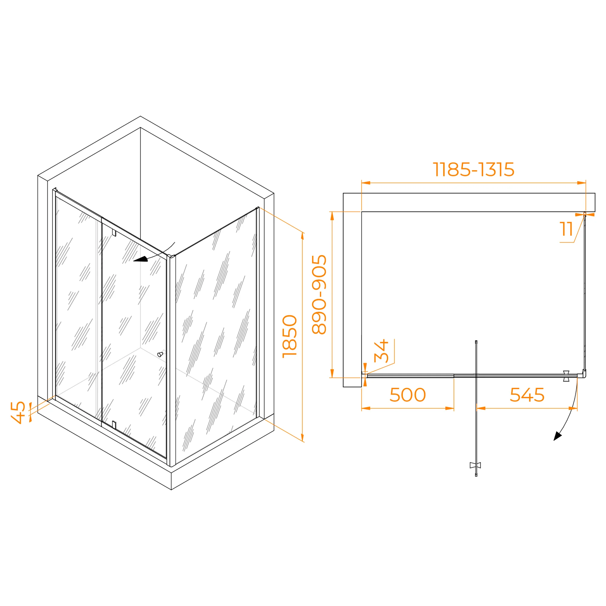 Конструкция дверей душевого уголка распашная, что облегчает доступ и создает дополнительное пространство в ванной комнате. Стекло прозрачное и покрыто антикапельной технологией Easy Clean, что делает его легким в уходе и обеспечивает чистоту и прозрачность стекла.