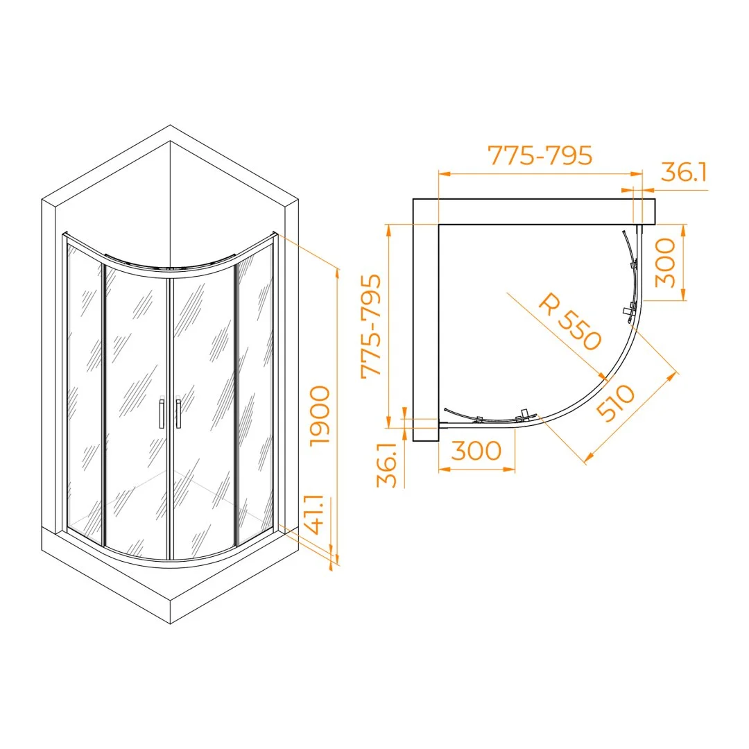 Высота данного душевого уголка составляет 1900 мм, что обеспечивает достаточное пространство для комфортного принятия душа. Высота, в сочетании с остальными параметрами, делает этот уголок идеальным выбором для семейного использования и для людей различного роста.