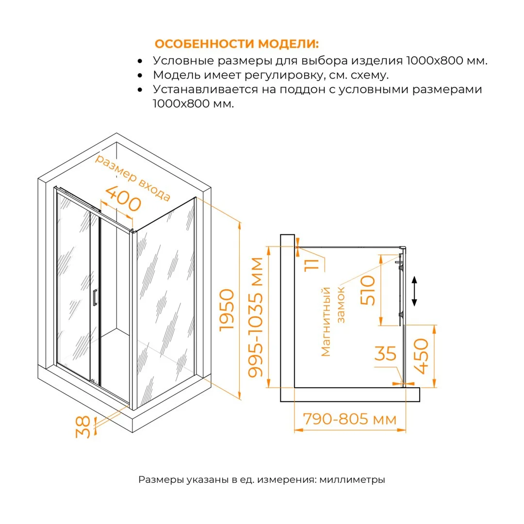 Внешний вид душевого уголка очень стильный и современный, что подчеркивается цветом профиля - хромом. Высота душевого угла составляет 1950 мм, что позволяет использовать его даже для очень высоких людей.