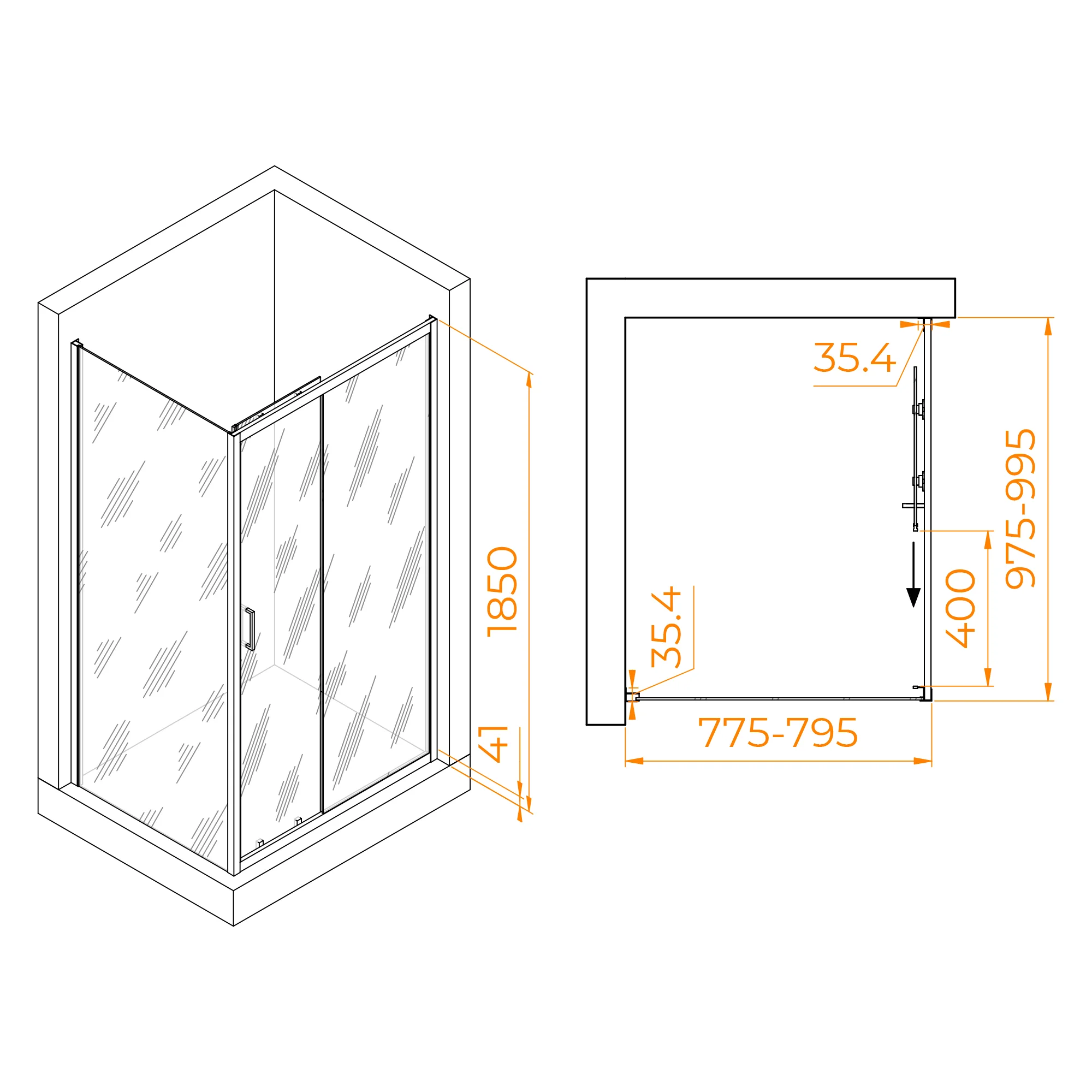 Душевой уголок имеет прямоугольную форму, которая позволяет эффективно использовать пространство в ванной комнате. Высота душевого угла составляет 1850 мм, что обеспечивает комфортное пребывание внутри него.