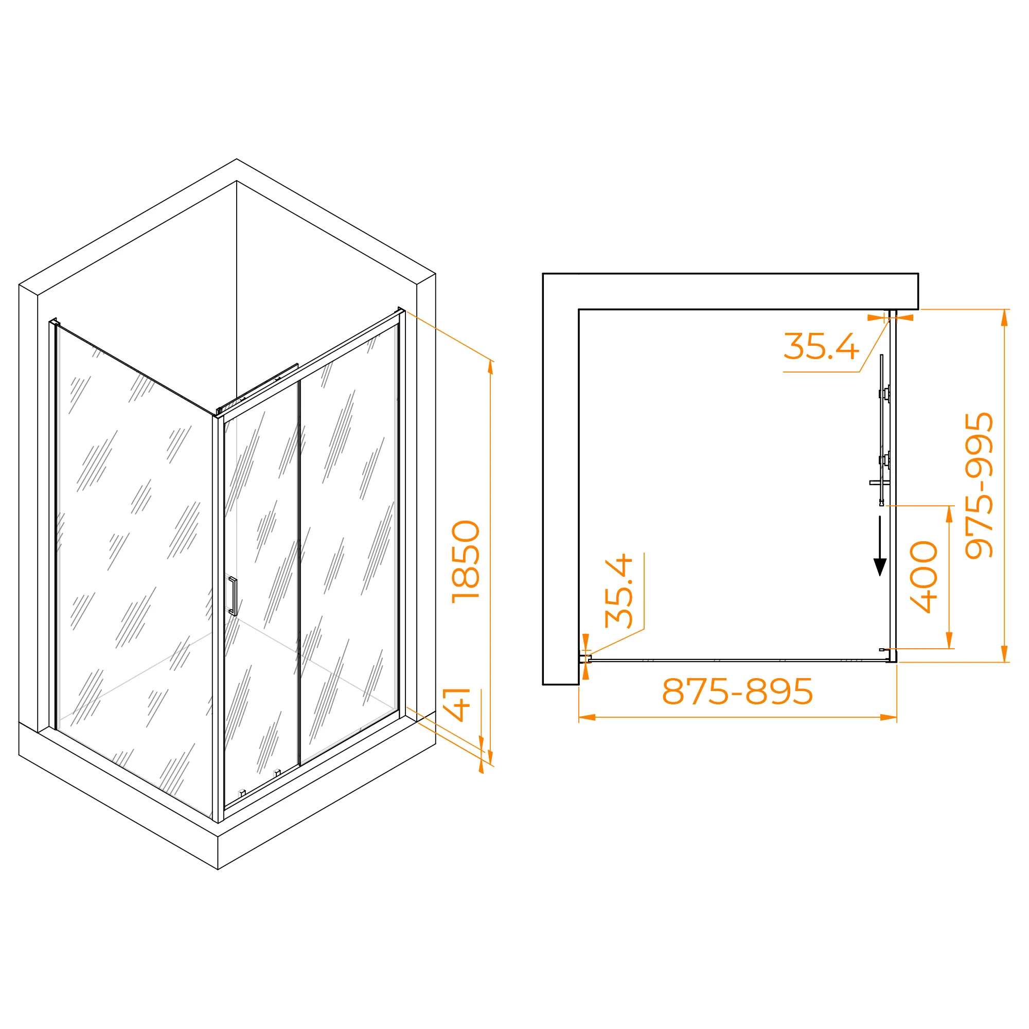 Душевой уголок имеет прямоугольную форму, которая позволяет эффективно использовать пространство в ванной комнате. Высота душевого угла составляет 1850 мм, что обеспечивает комфортное пребывание внутри него.
