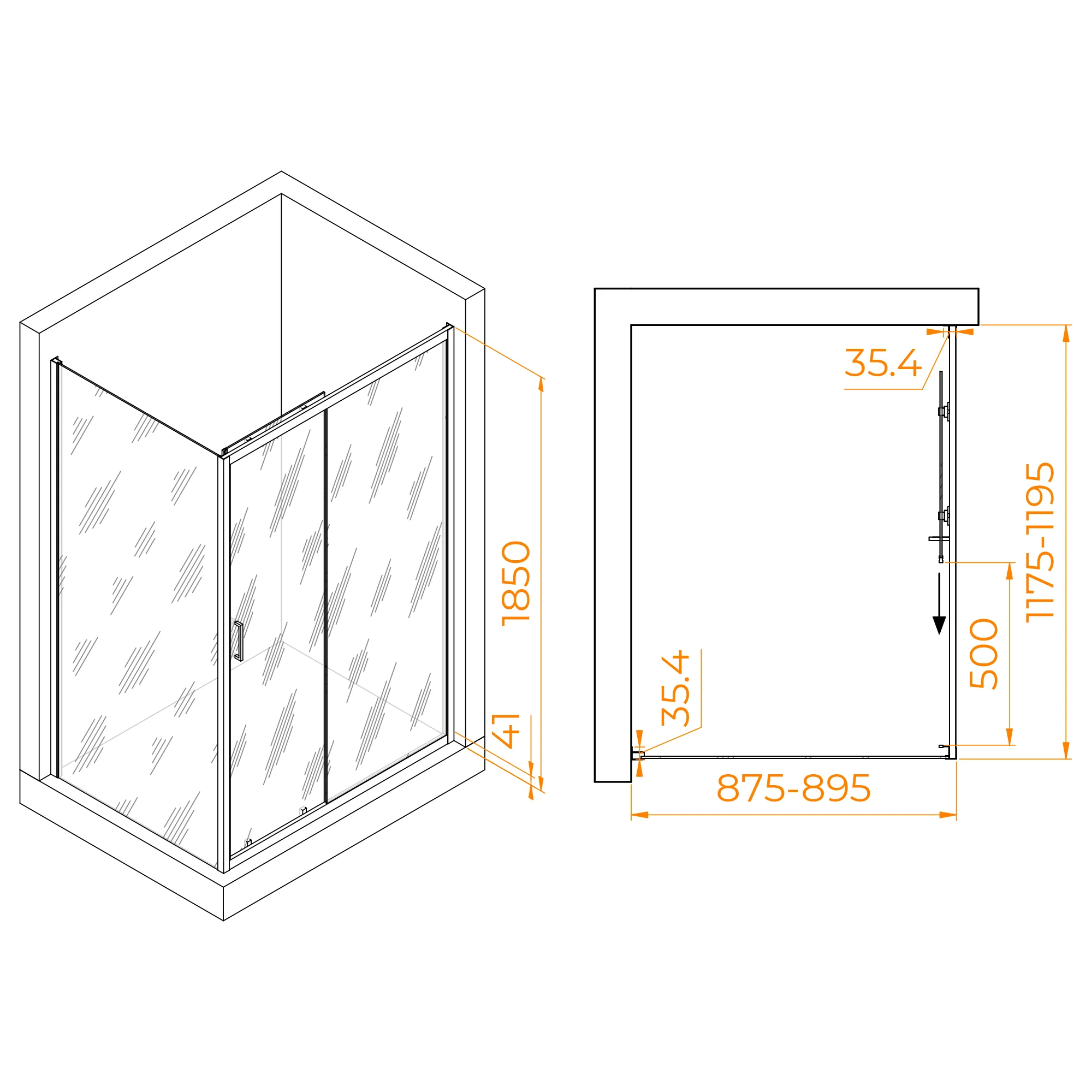 Душевой уголок имеет прямоугольную форму, которая позволяет эффективно использовать пространство в ванной комнате. Высота душевого угла составляет 1850 мм, что обеспечивает комфортное пребывание внутри него.