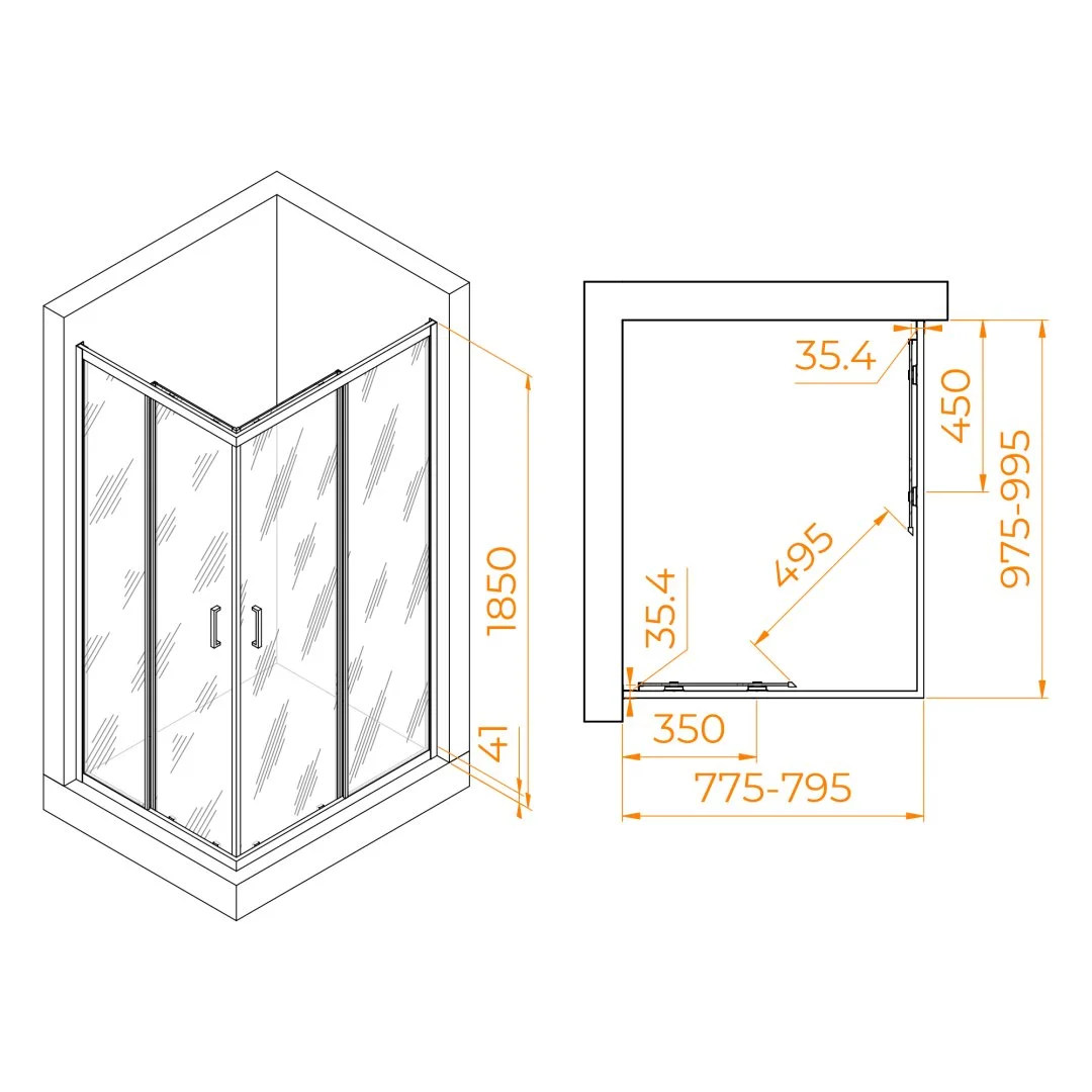 Двойные регулируемые ролики позволяют легко открывать и закрывать двери душевого уголка, а конструкция раздвижных дверей обеспечивает экономию места в ванной комнате.