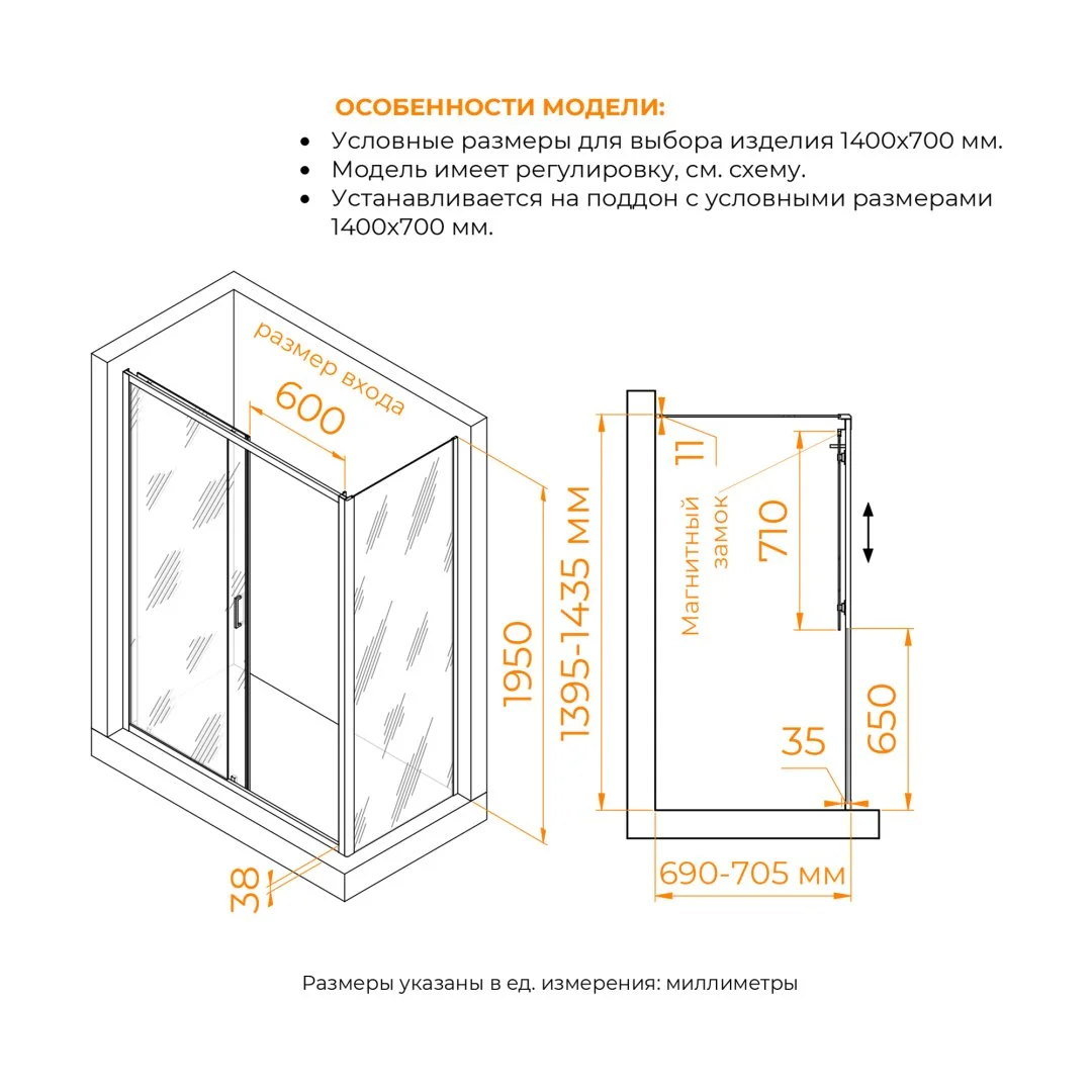 Конструкция дверей уголка раздвижная, что обеспечивает простоту в использовании и комфортный вход и выход. Двойные регулируемые ролики могут быть легко настроены при необходимости, что позволит наилучшим образом адаптировать данный уголок к индивидуальным потребностям.