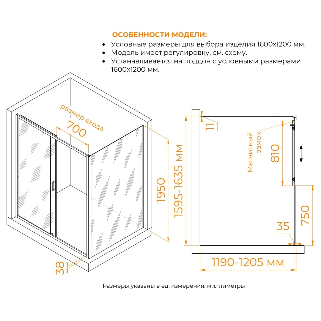 Душевой уголок RGW PA-74B (PA-14B + Z-050-2B) 1600x1200 мм 410874162-14 черный Easy Clean