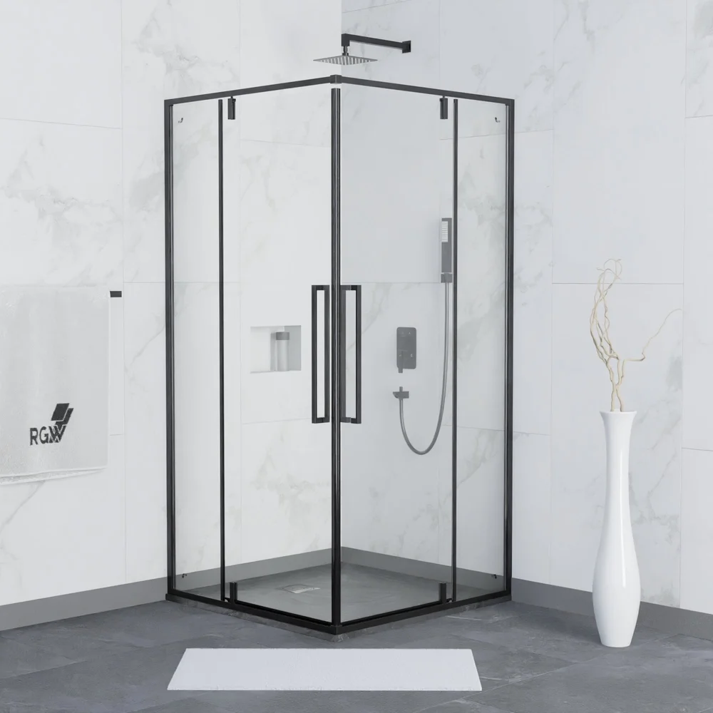 Душевой уголок RGW SV-33B - это квадратная конструкция, изготовленная из прозрачного стекла толщиной 6 мм и черного анодированного алюминиевого профиля. Уголок имеет высоту 2000 мм, что обеспечивает комфортное использование даже для высоких пользователей.