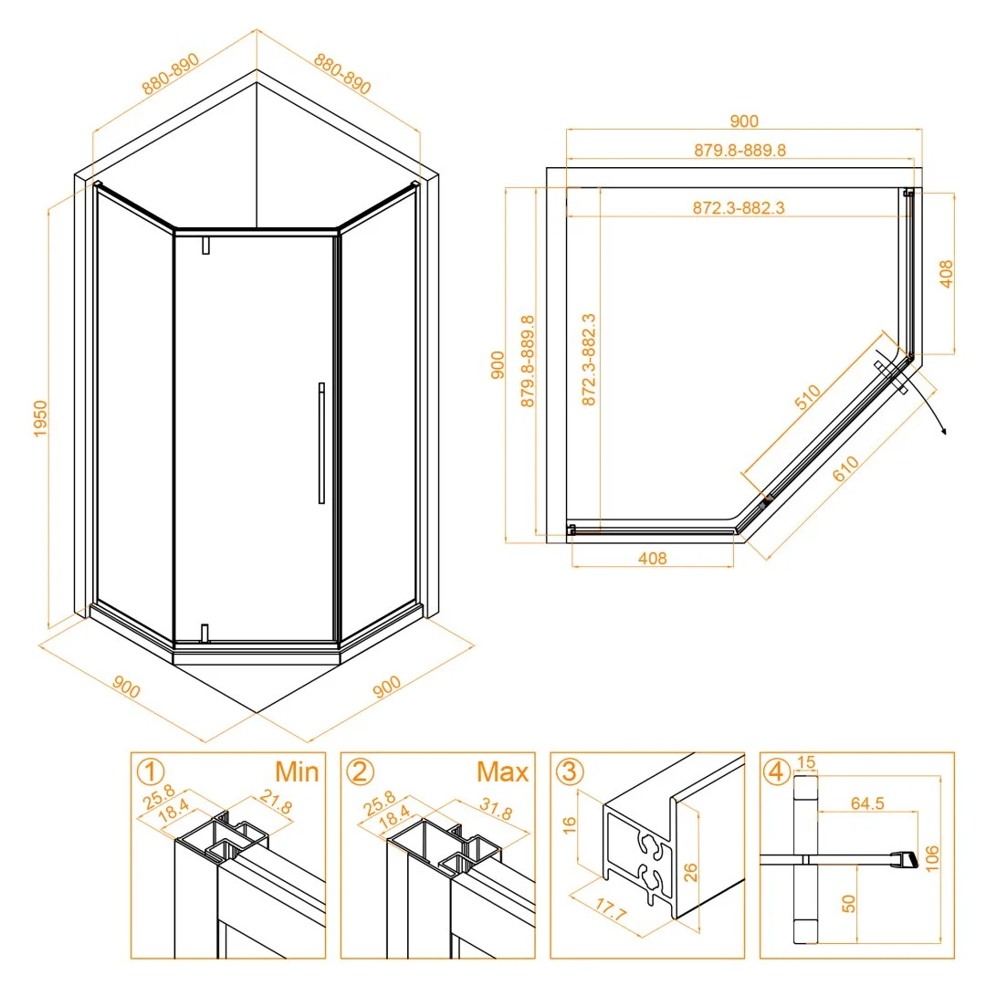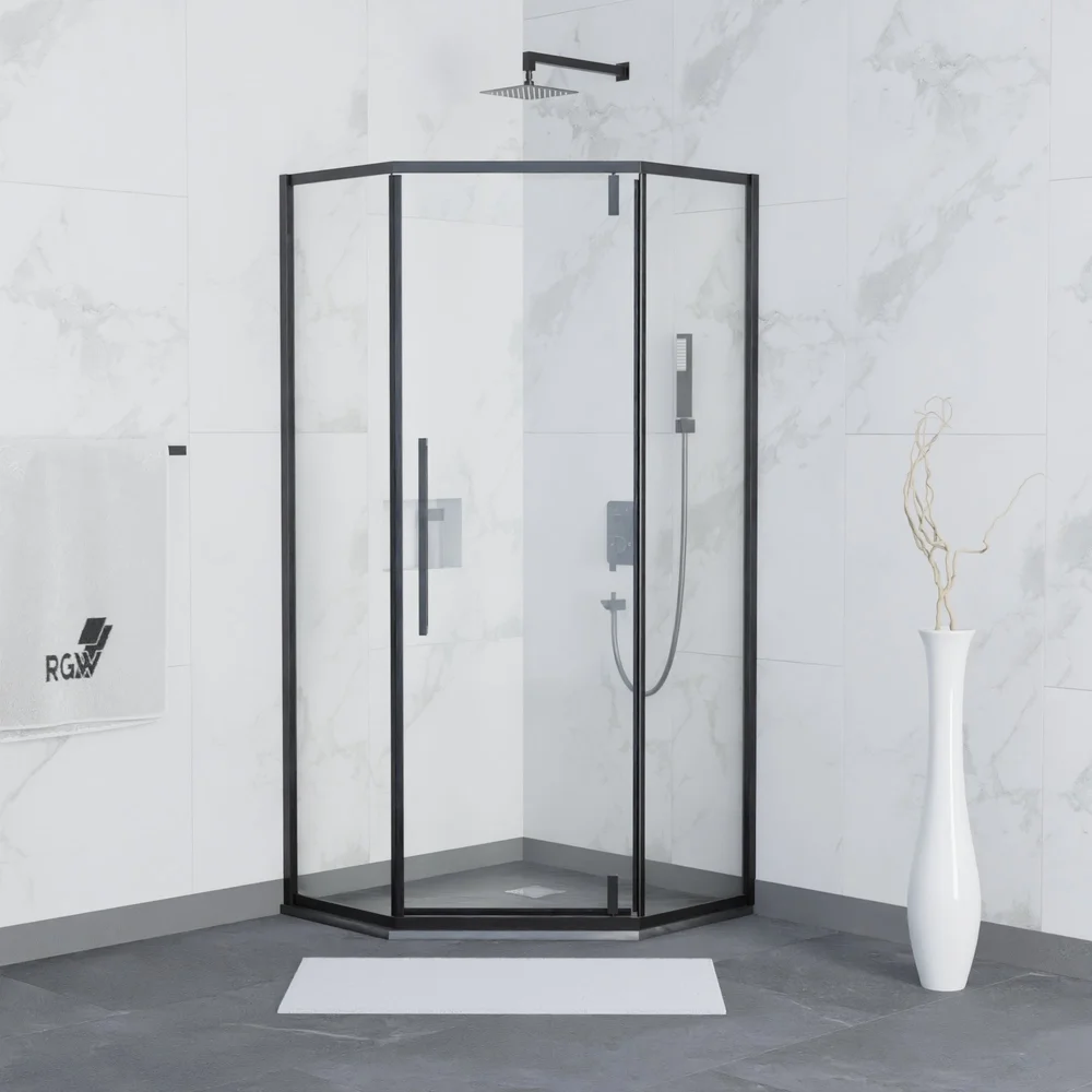 Основное преимущество данного душевого уголка – это его толщина стекла 6 мм, что обеспечивает высокую прочность и долговечность конструкции. Размеры душевого уголка – трапеция, его высота составляет 1950 мм, что позволяет легко поместиться внутри. Материал профиля – анодированный алюминий в черном цвете, что гармонично подчеркивает дизайн и придает углуоку роскошный внешний вид.