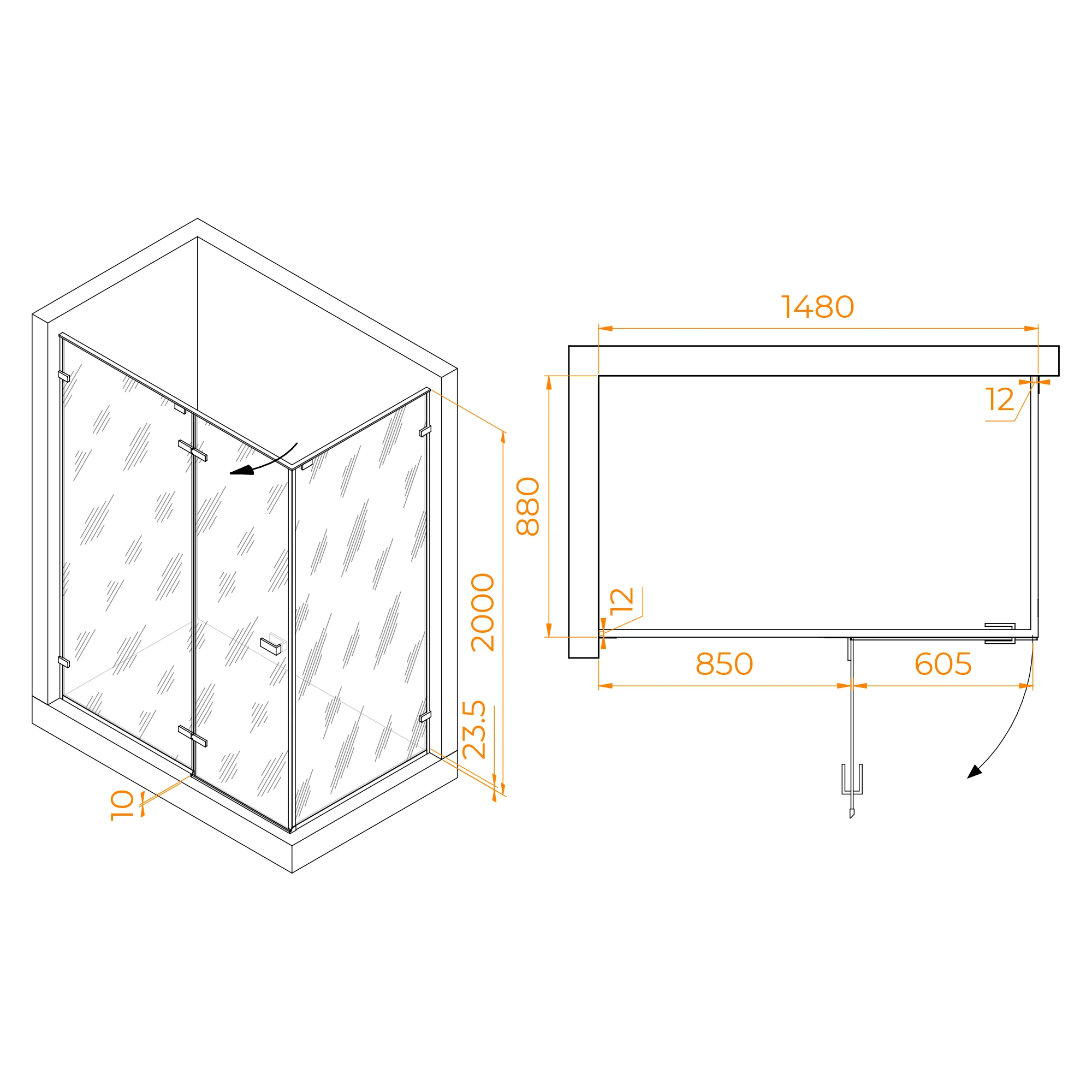 Душевой угол выполнен в актуальном стиле, модель сочетает в себе утончённый дизайн профиля и непревзойдённую геометрию фурнитуры в стиле хай-тек, идеально дополняя современную ванную комнату.