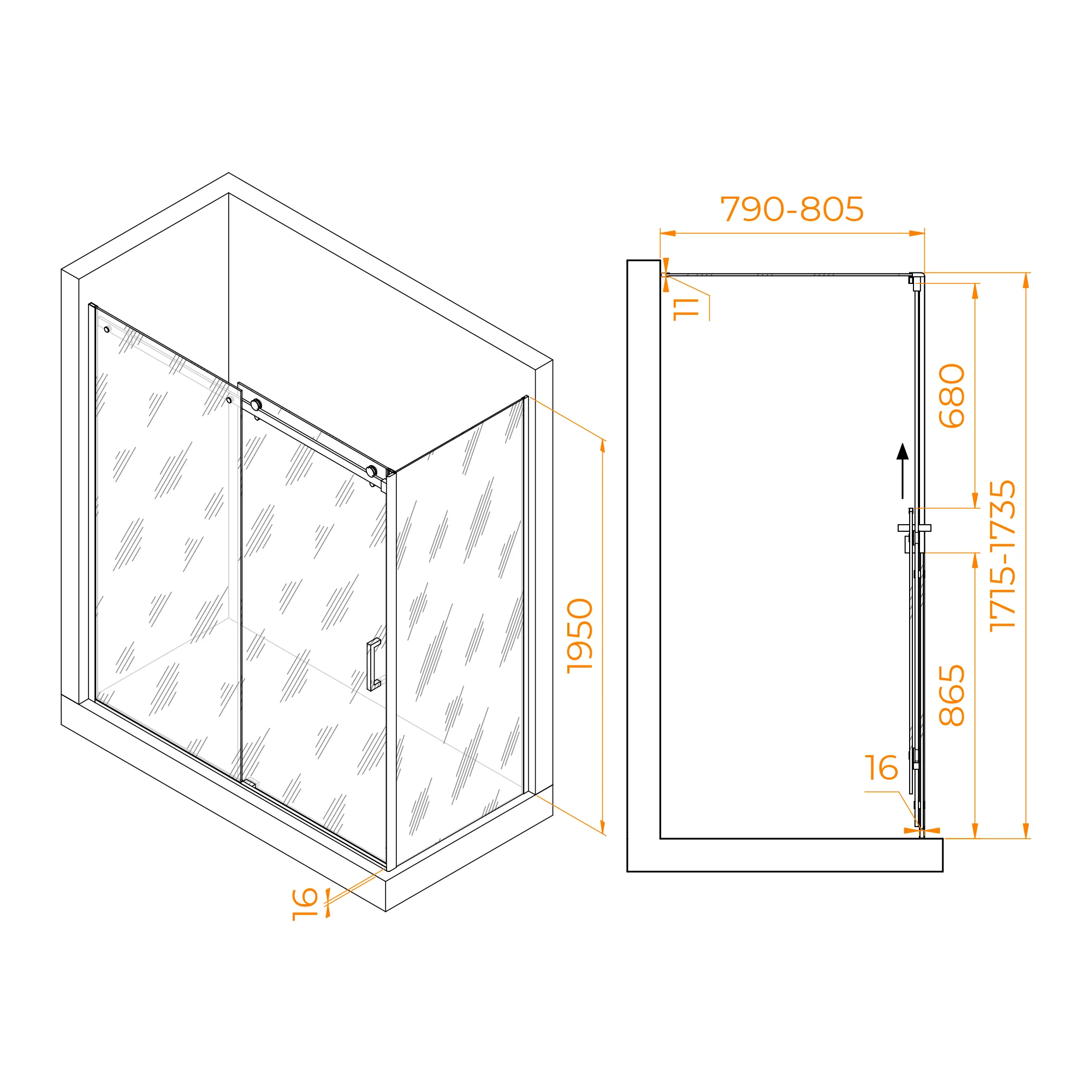 Цвет профиля хром, что придает душевому уголку современный и стильный вид. Высота душевого угла составляет 1950 мм, что позволяет использовать его для любого размера человека.
