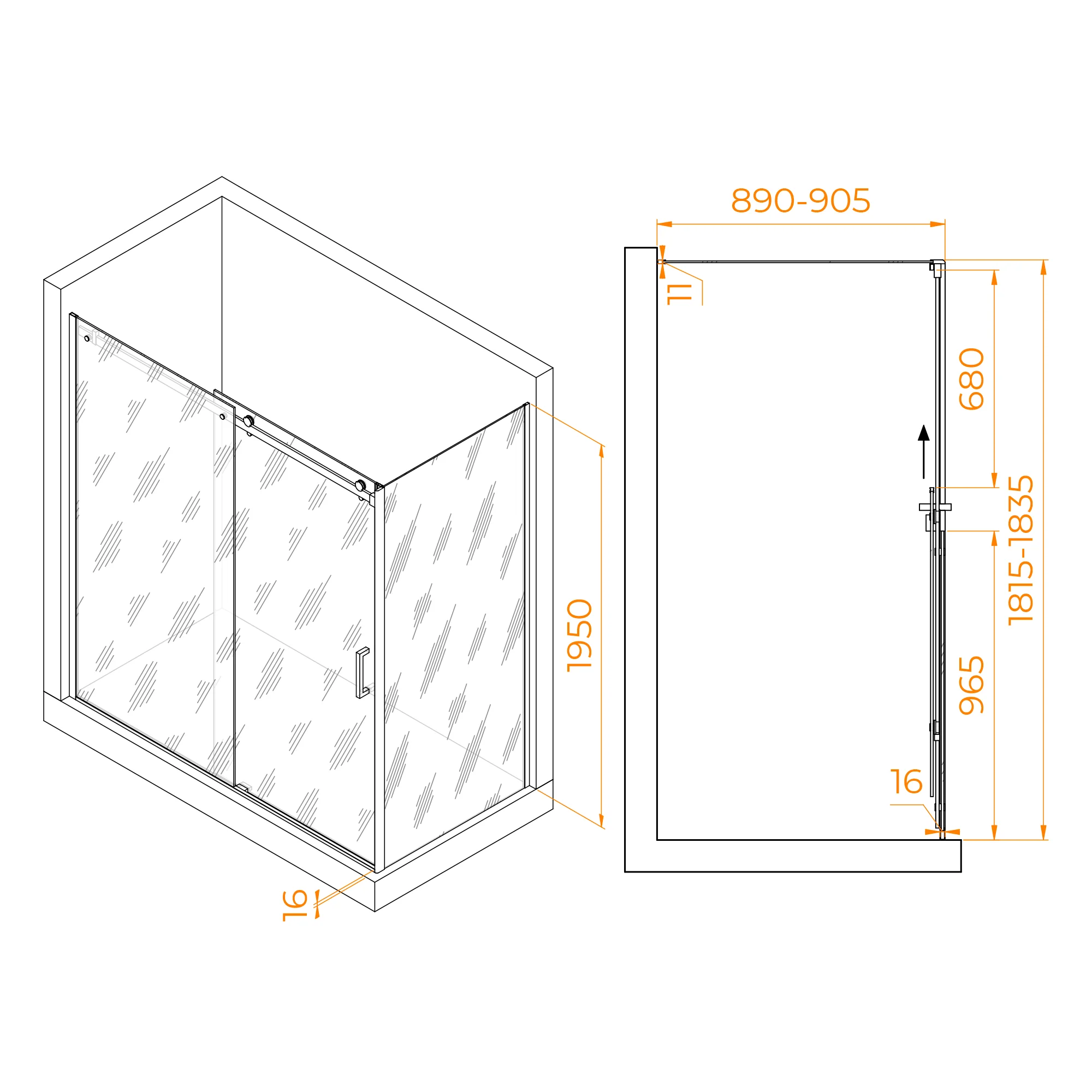 Цвет профиля хром, что придает душевому уголку современный и стильный вид. Высота душевого угла составляет 1950 мм, что позволяет использовать его для любого размера человека.