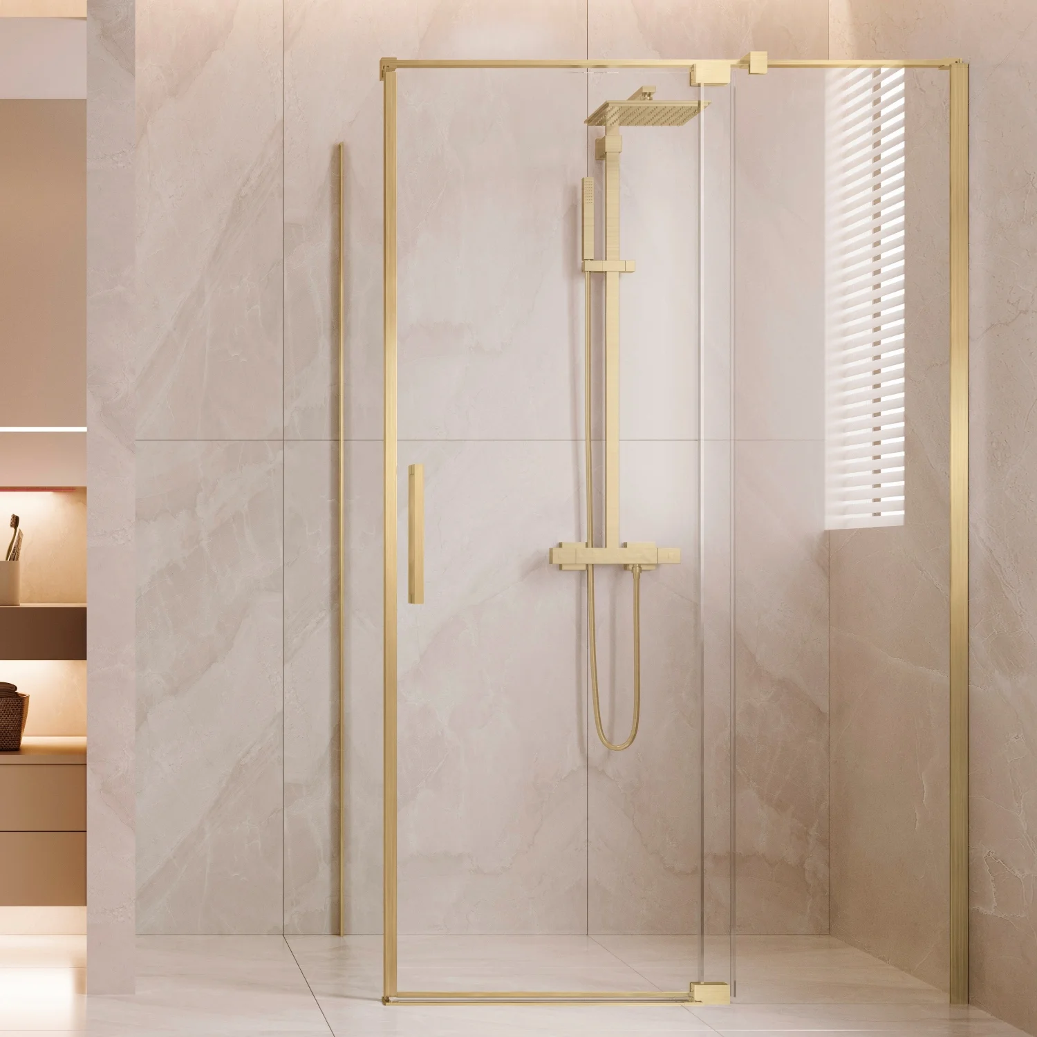 Душевой уголок Vincea Extenza VSR-4EX901010CLG, 900/1000x1000, брашированное золото, стекло прозрачное