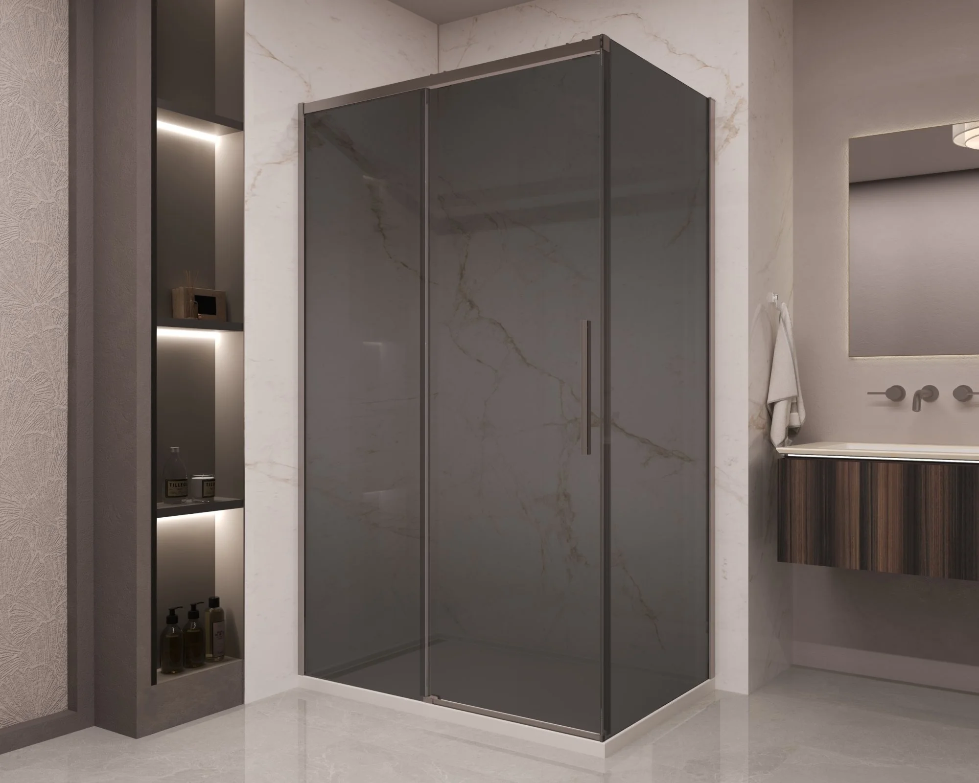 Душевой уголок Vincea Stella VSR-1ST9012CGGM 1200x900 вороненая сталь, стекло тонированное