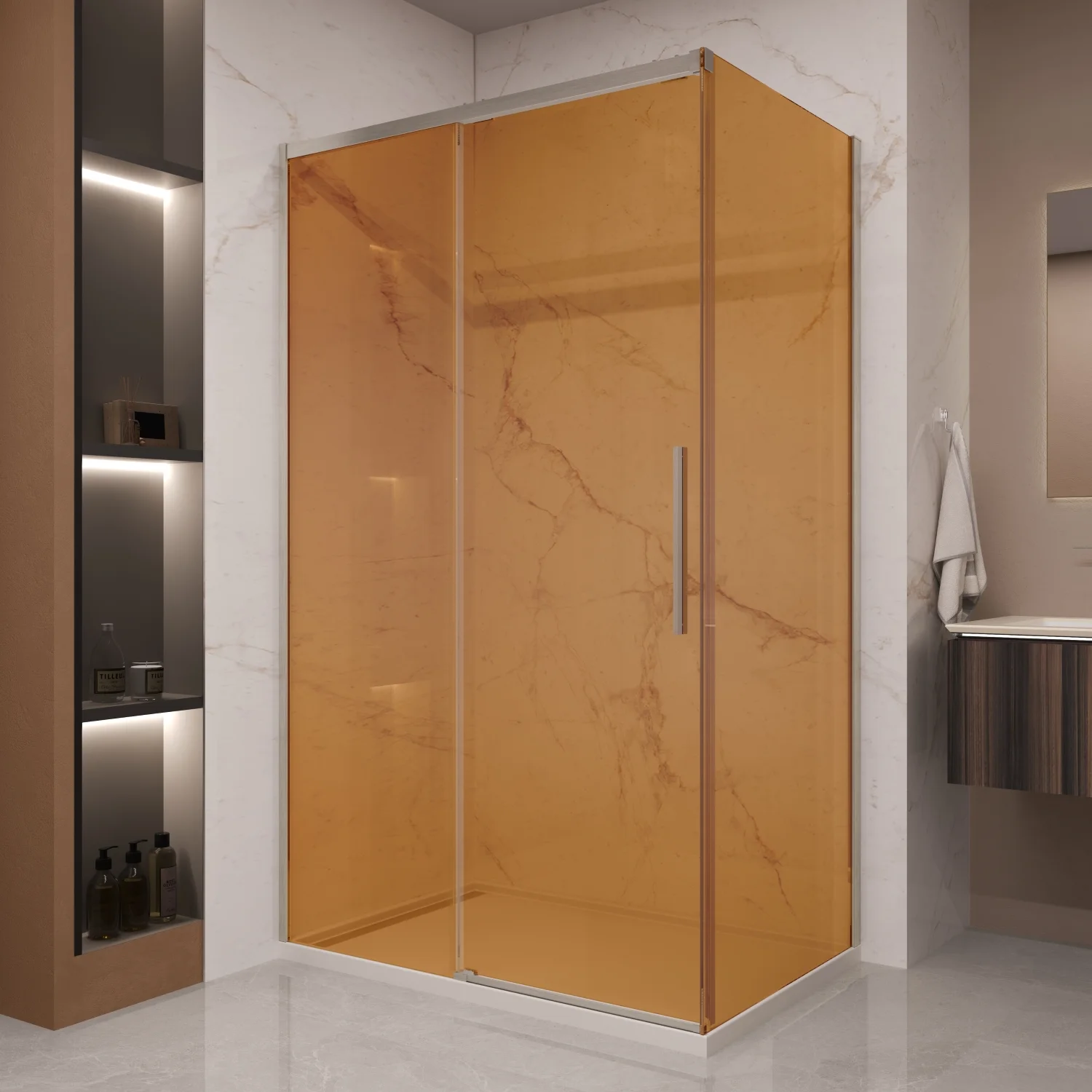 Душевой уголок Vincea Stella VSR-1ST9012GSBN, 1200x900, брашированный никель, стекло янтарь