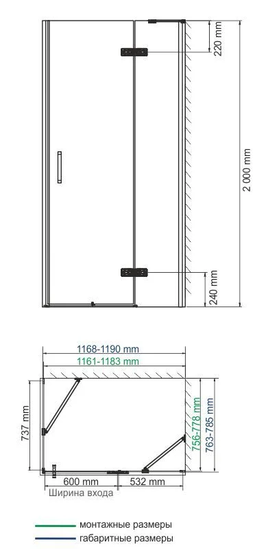 Характеристики:Закаленное прозрачное стекло 8 мм Покрытие стекла WasserSchutz Распашной механизм на петлях из латуни Анодированный алюминиевый профиль 46 мм Ручка двери из сплава металлов Регулирующий профиль до 13 мм Силиконовый уплотнитель двери с магнитным замком Декоративные накладки из черного матового ABS-пластика на ру